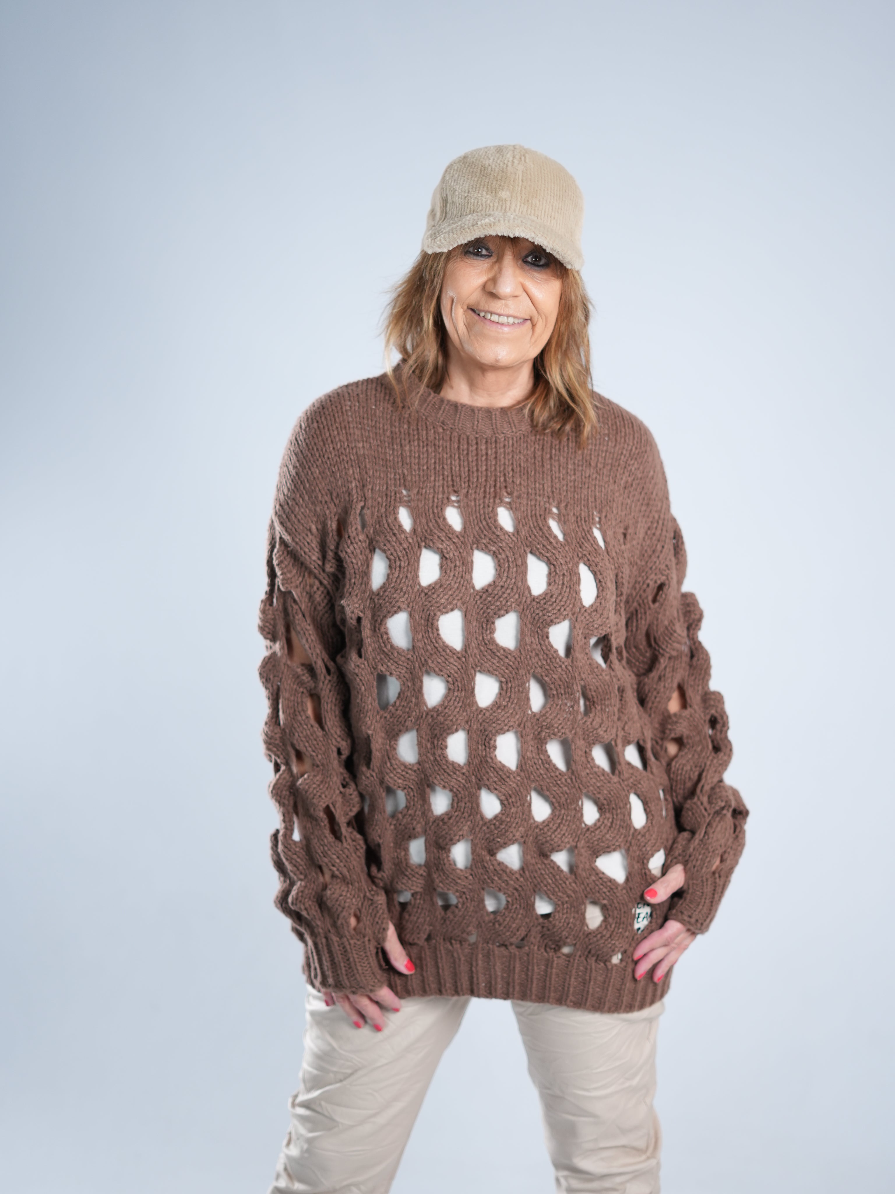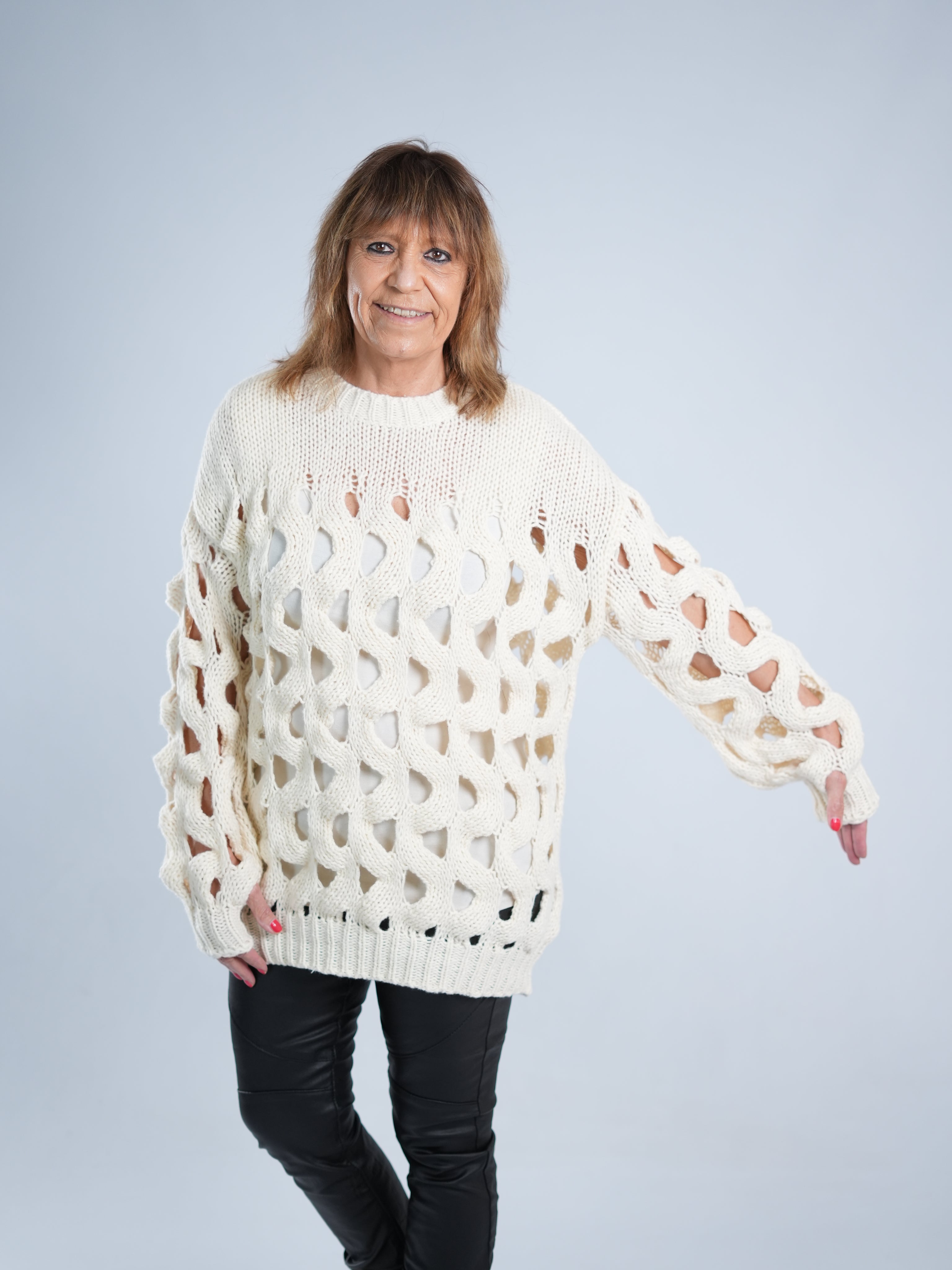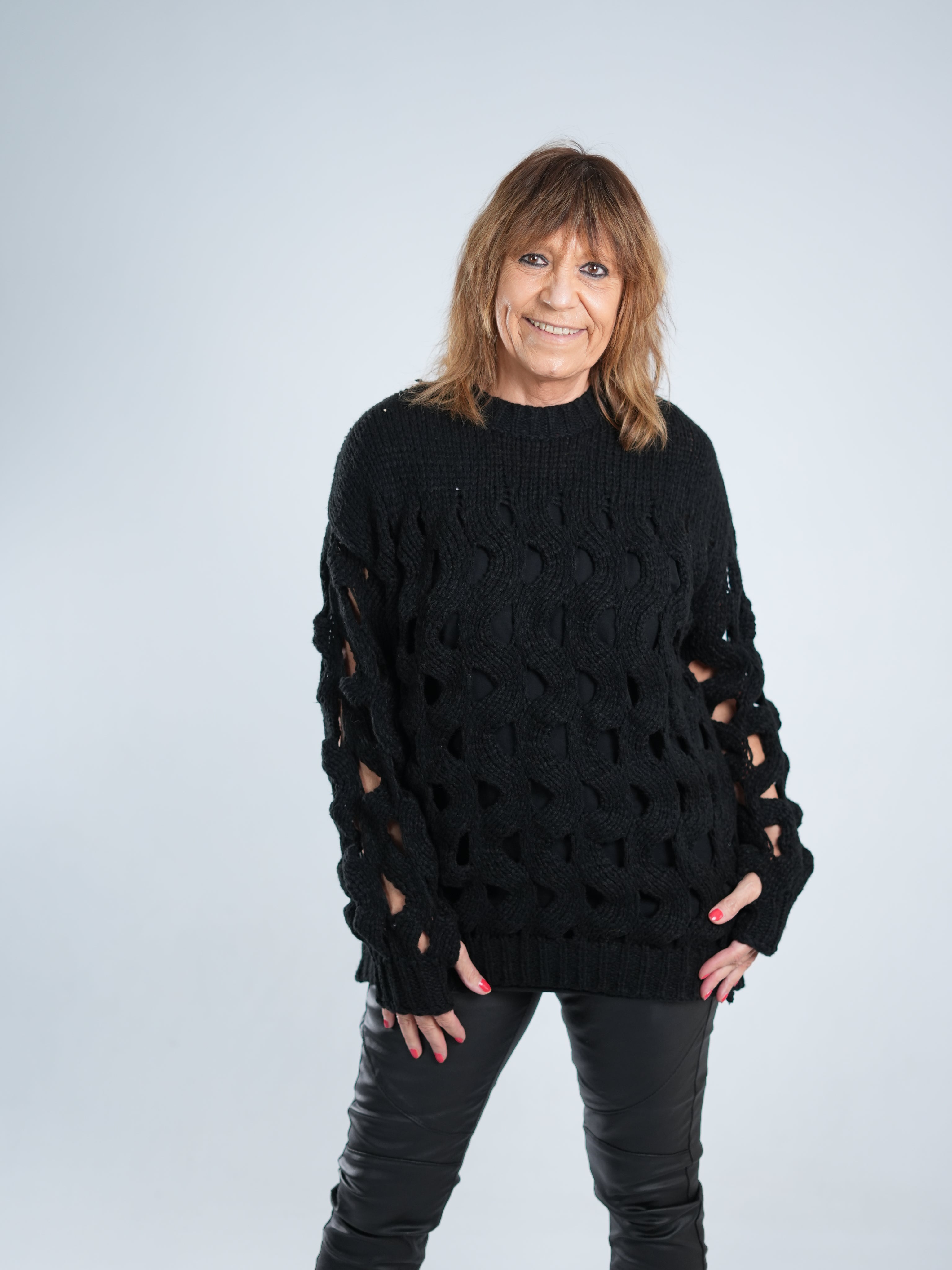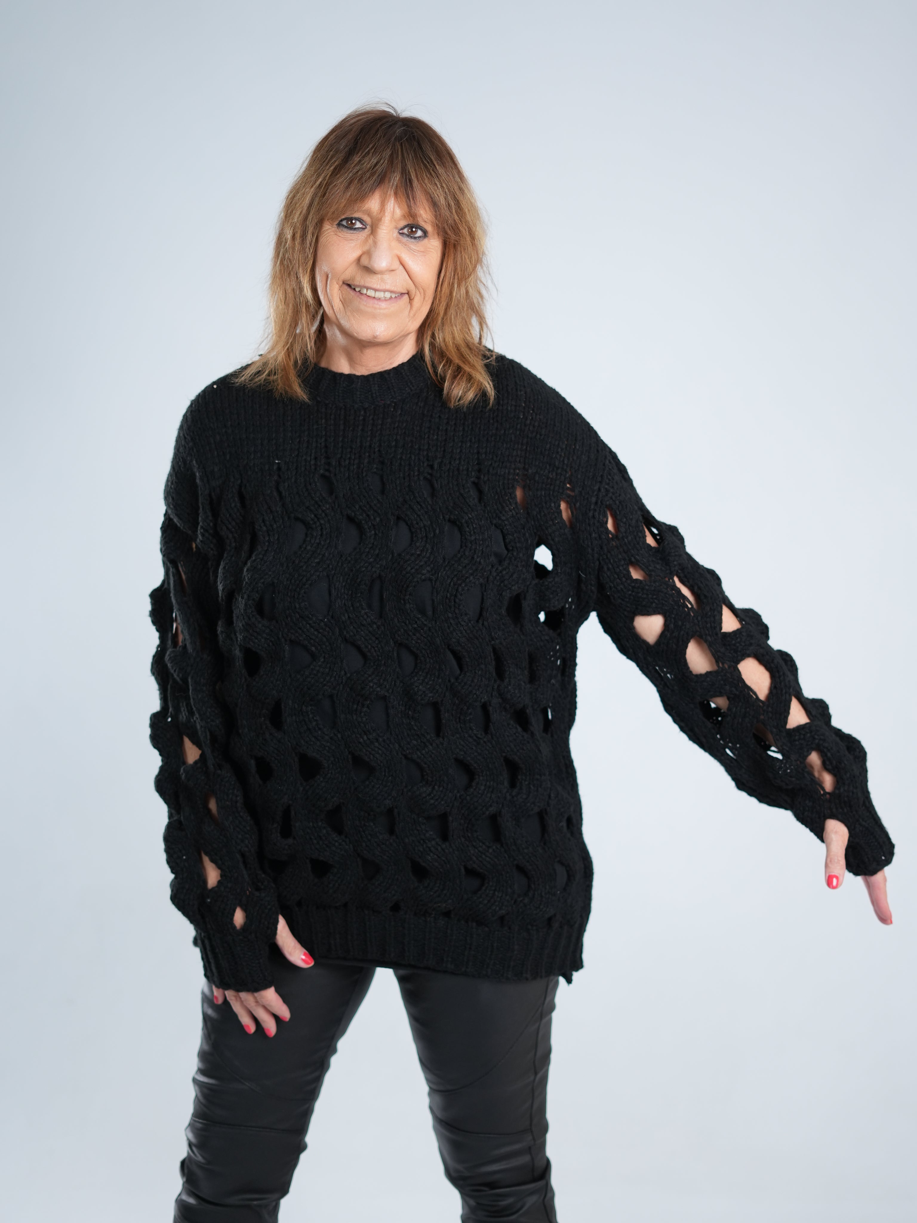 Marion ist 172cm groß und trägt Größe 40/42. Sie ist auf allen Produktbildern zu sehen und präsentiert die wunderschönen onesize Outfits.