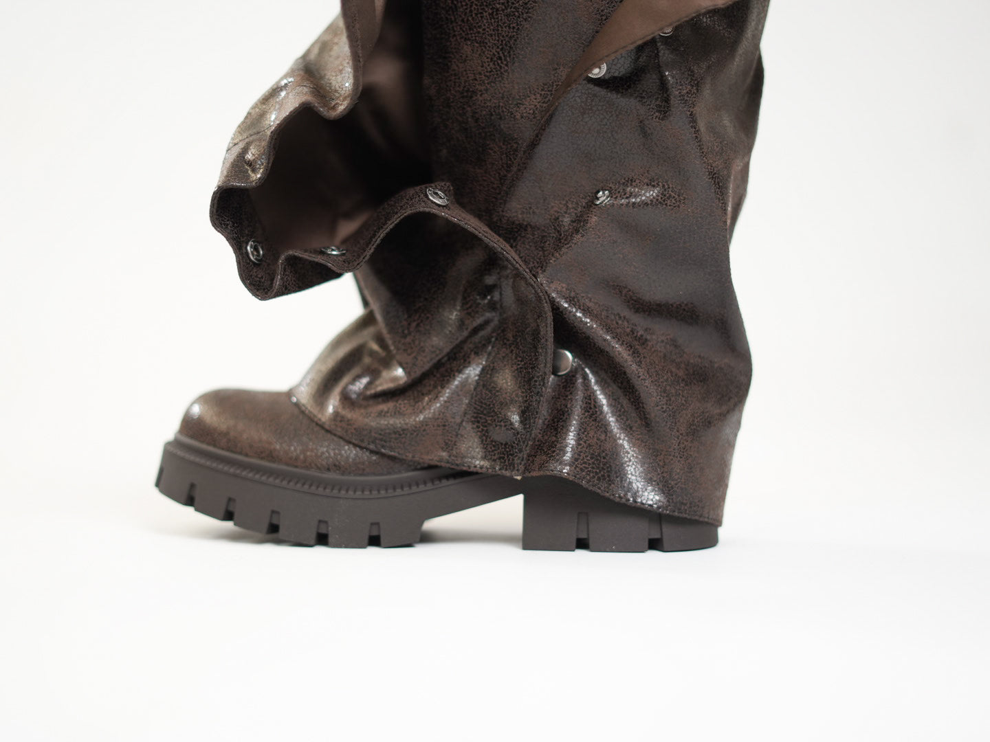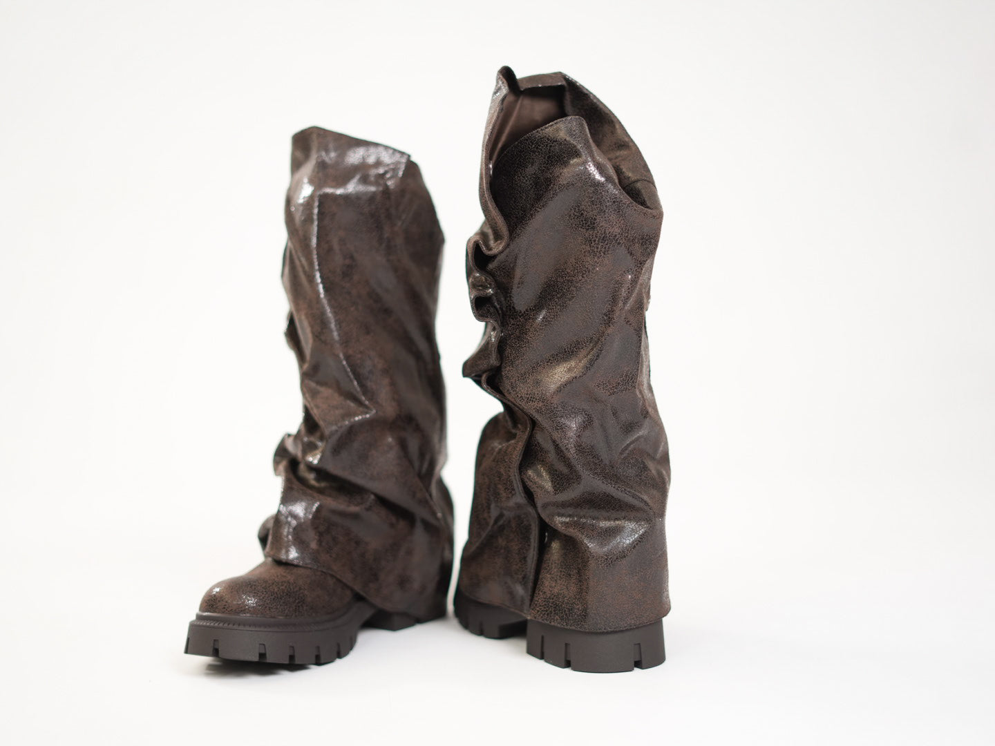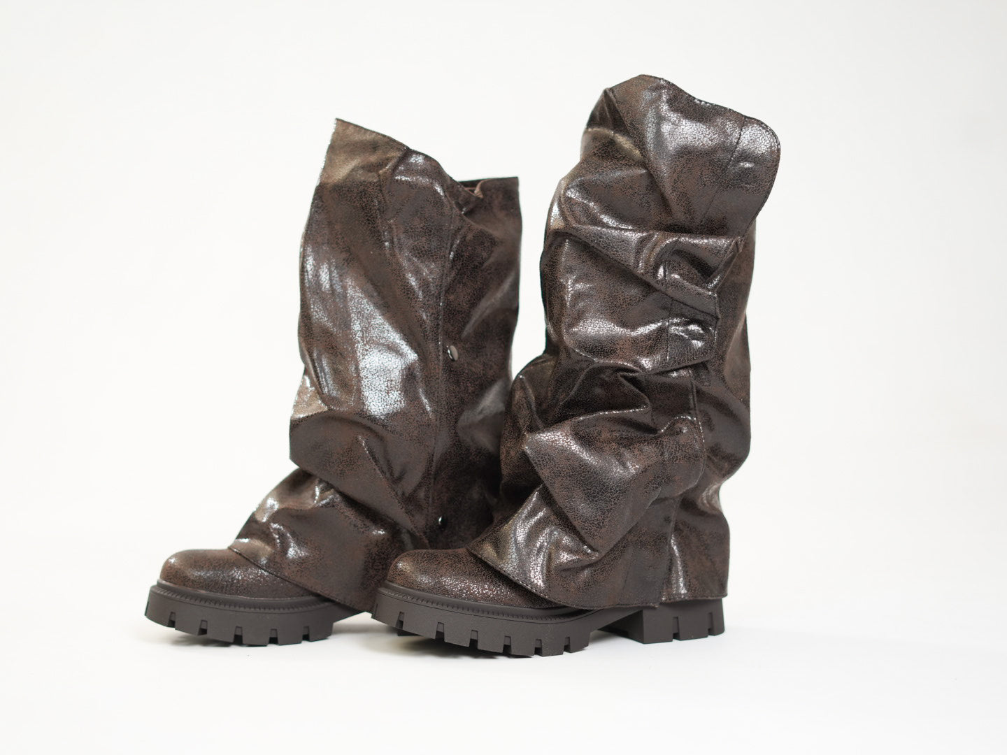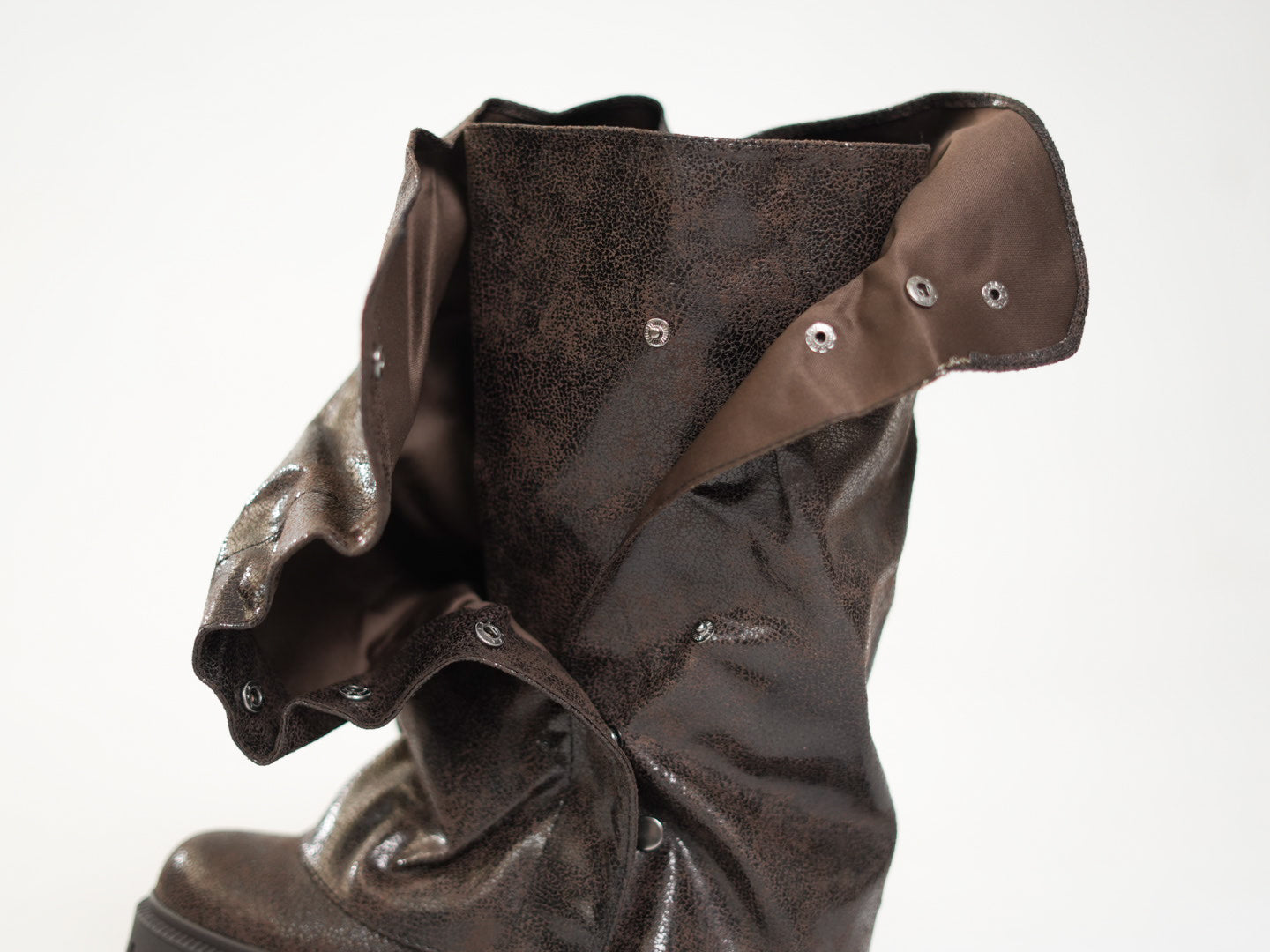 Hingucker Stiefel in Schoko mit einer lockeren Stulpe.