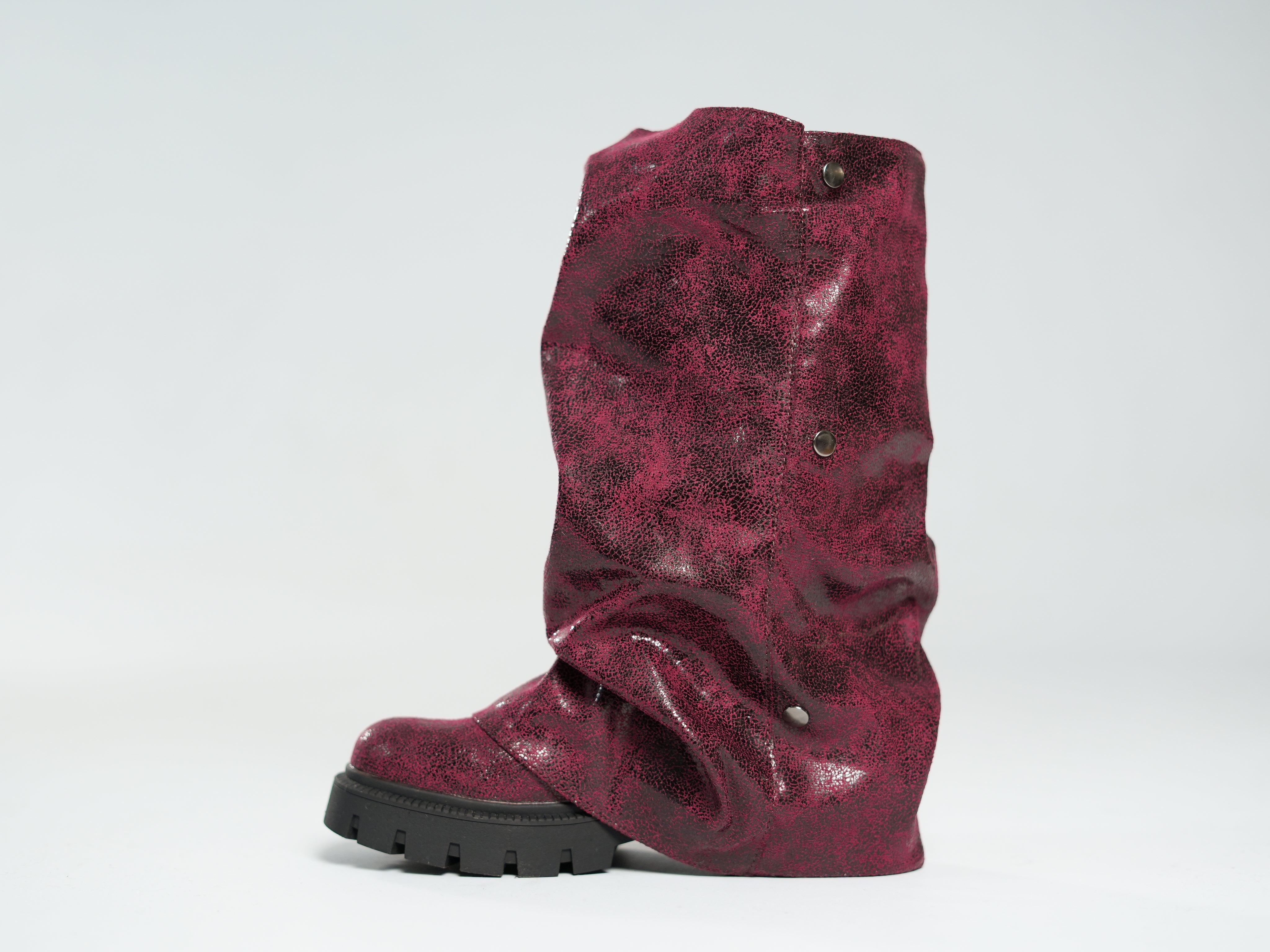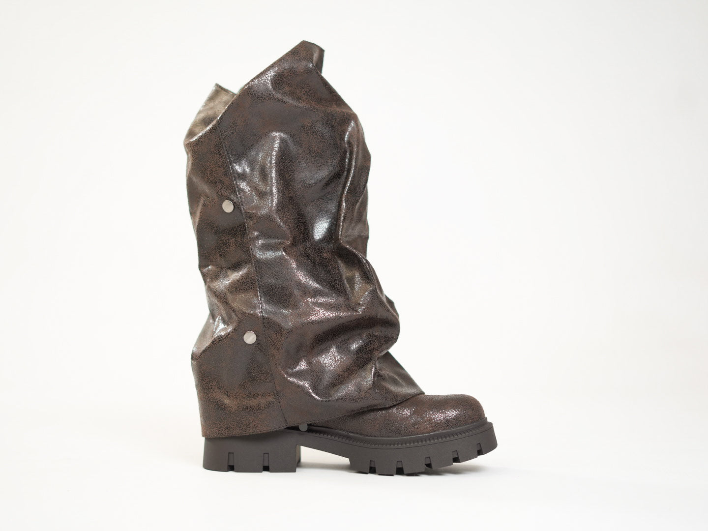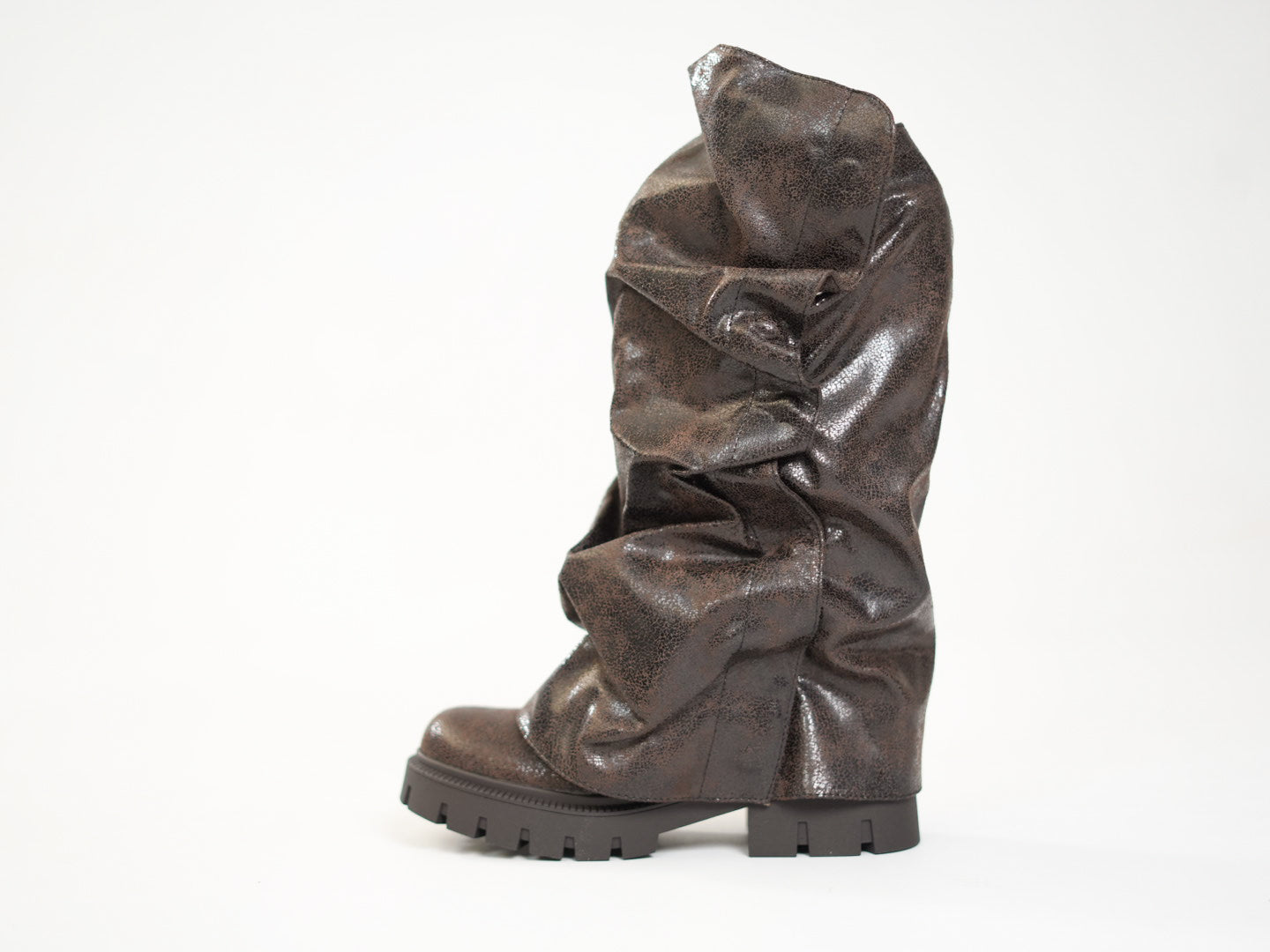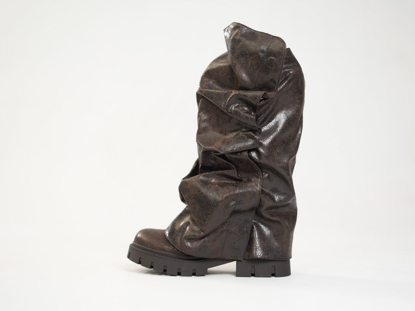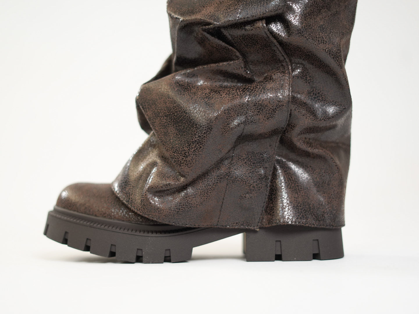 Hingucker Stiefel in Schoko mit einer lockeren Stulpe.