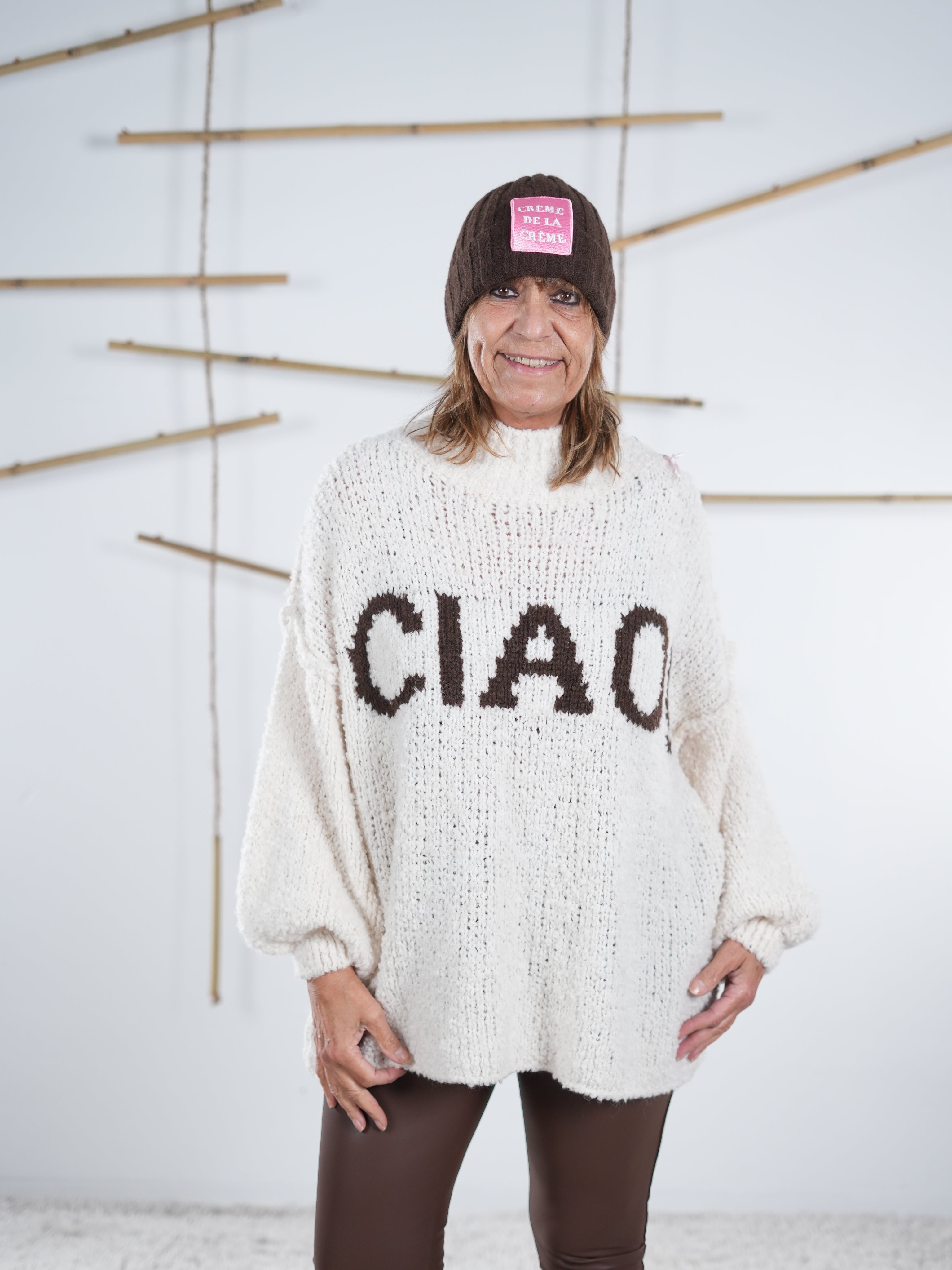 Oversize Strickpulli in Naturtönen
