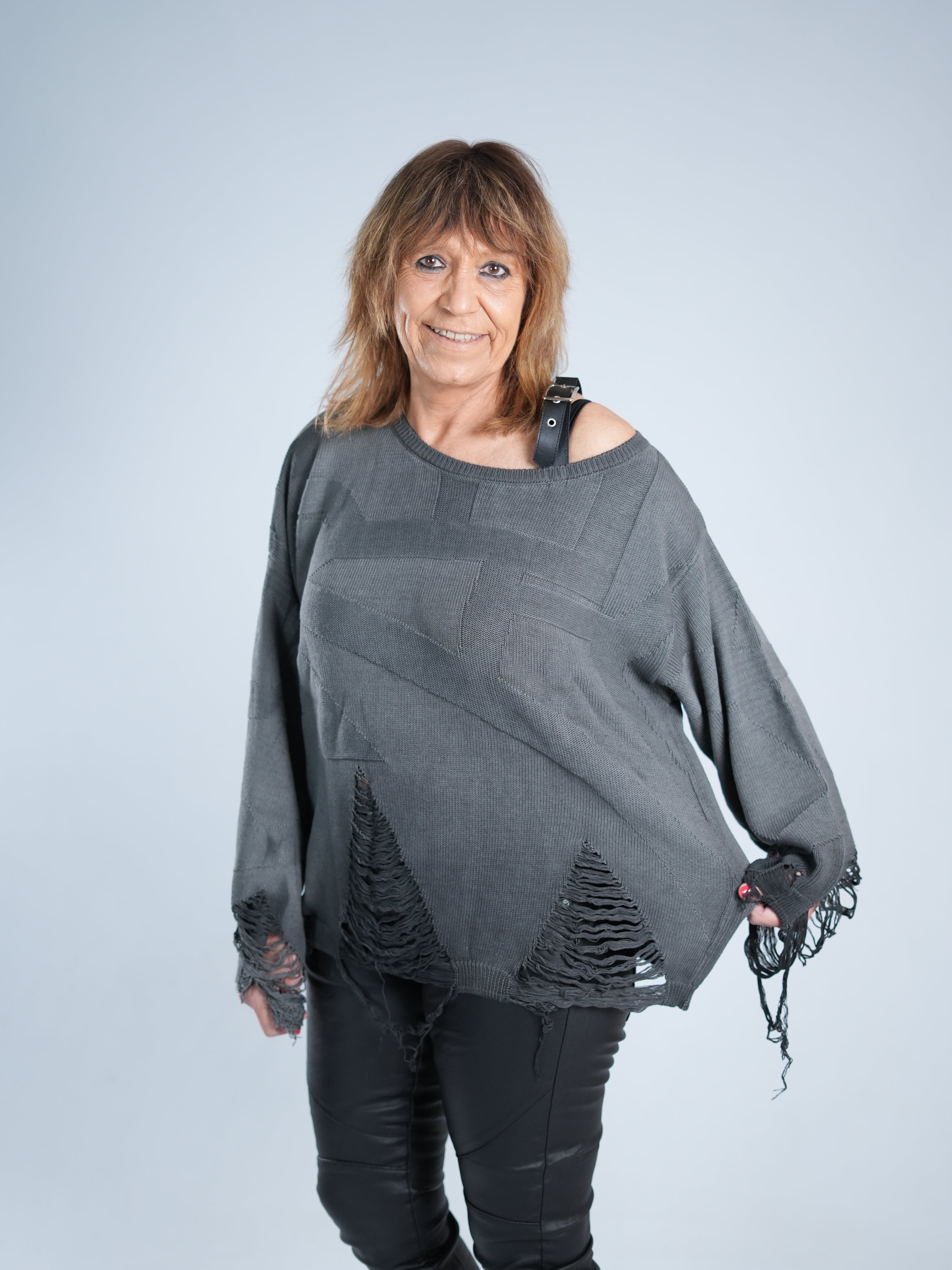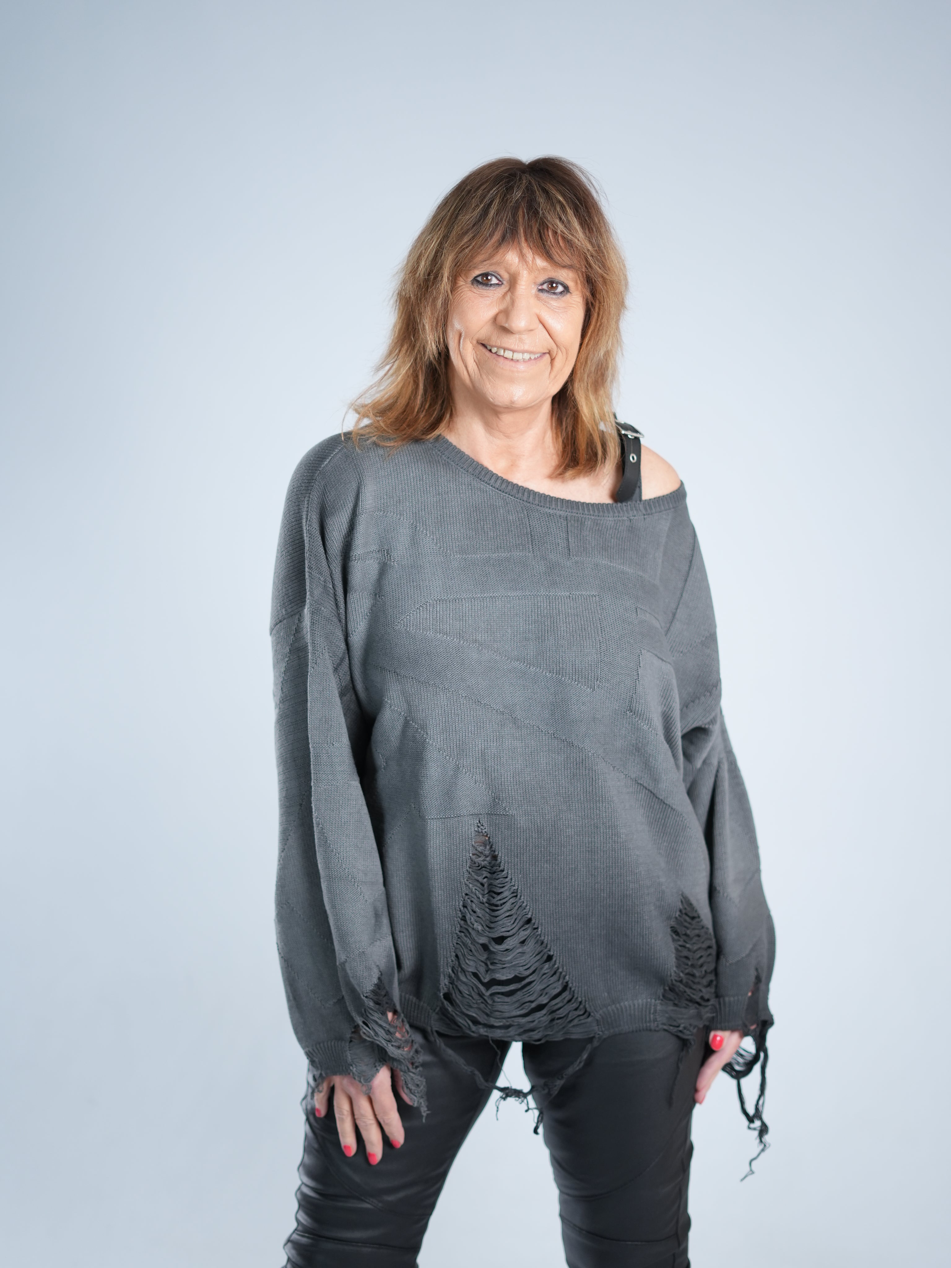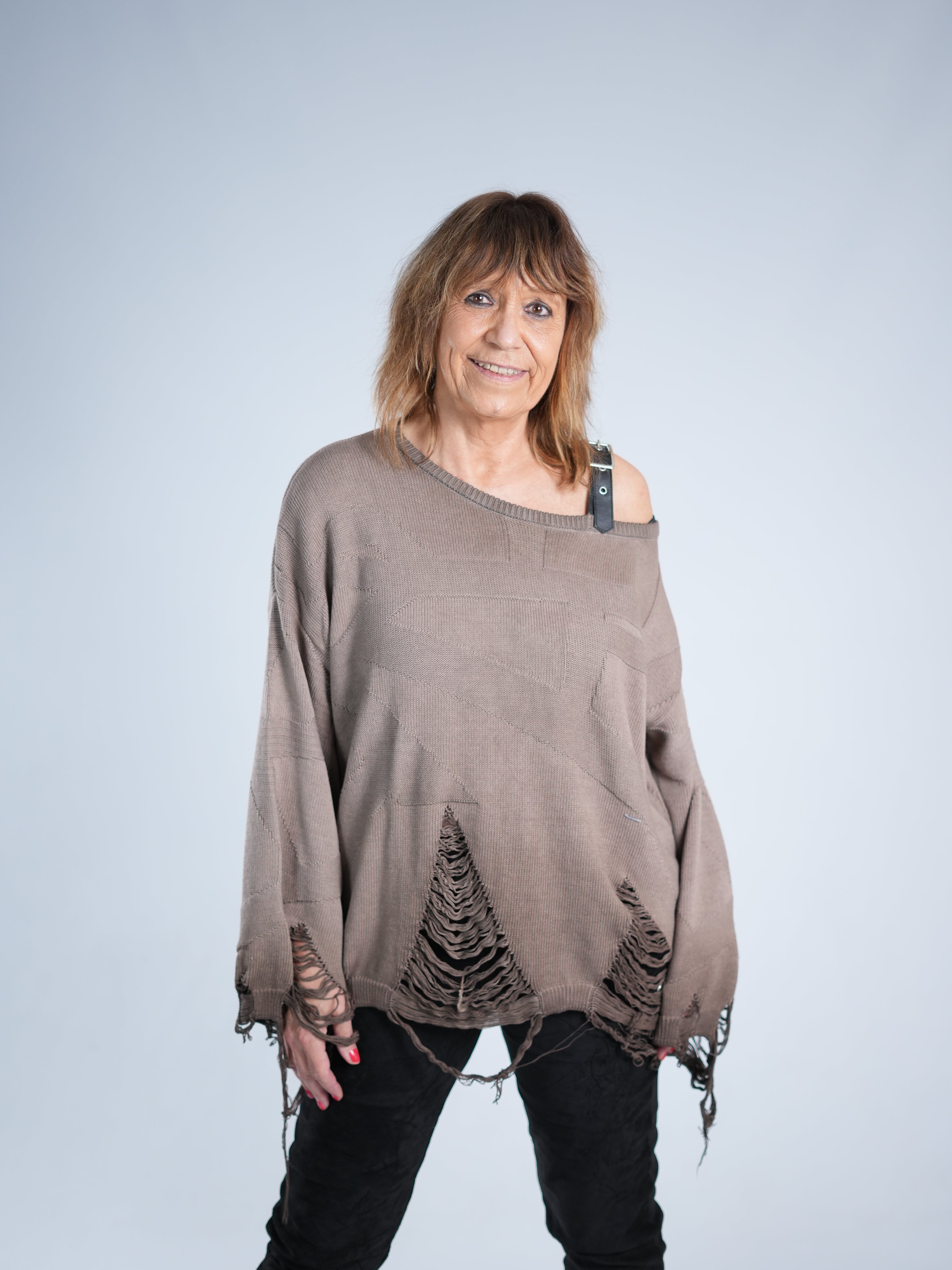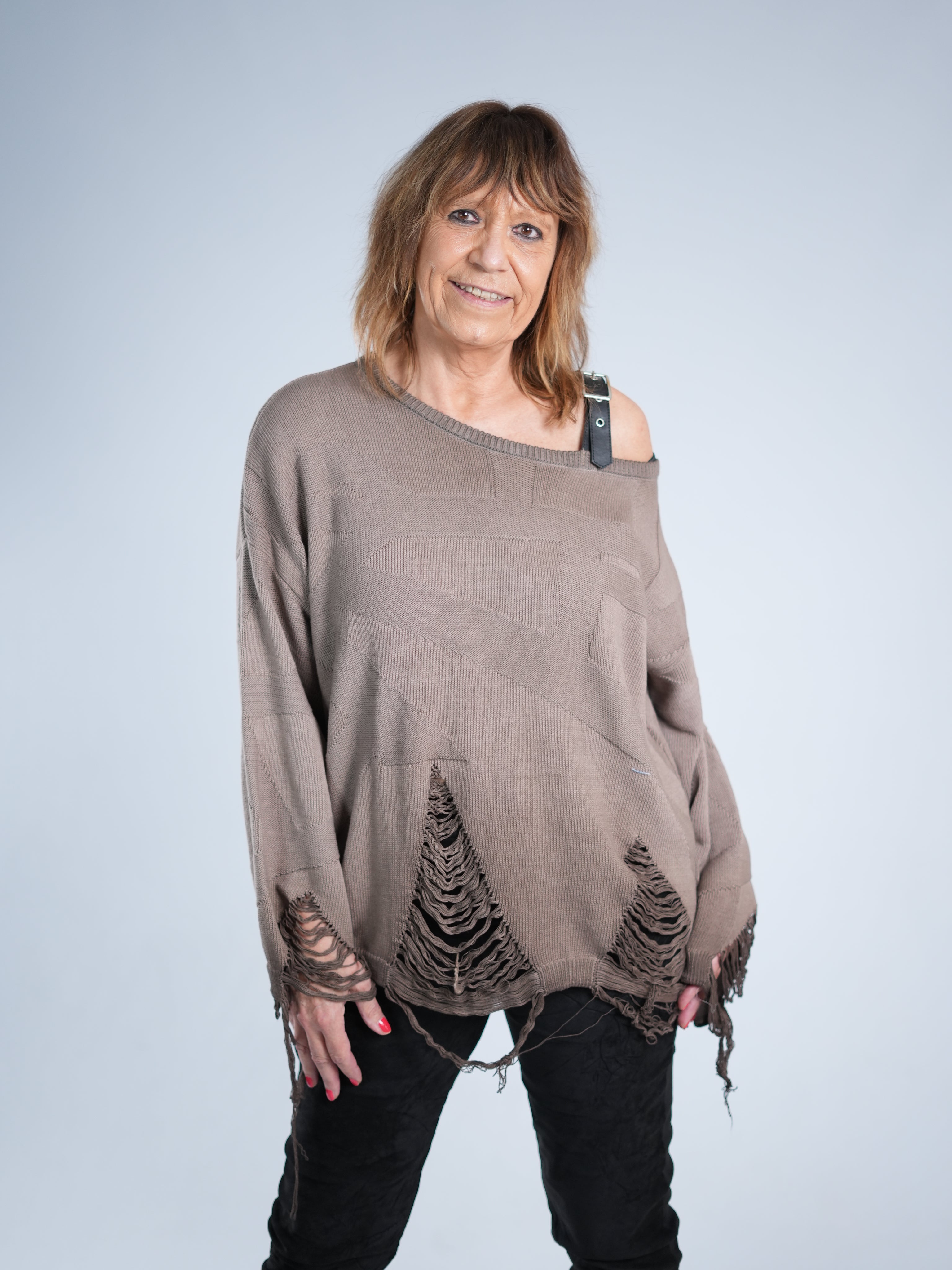 Marion ist 172cm groß und trägt Größe 40/42. Sie ist auf allen Produktbildern zu sehen und präsentiert die wunderschönen onesize Outfits.