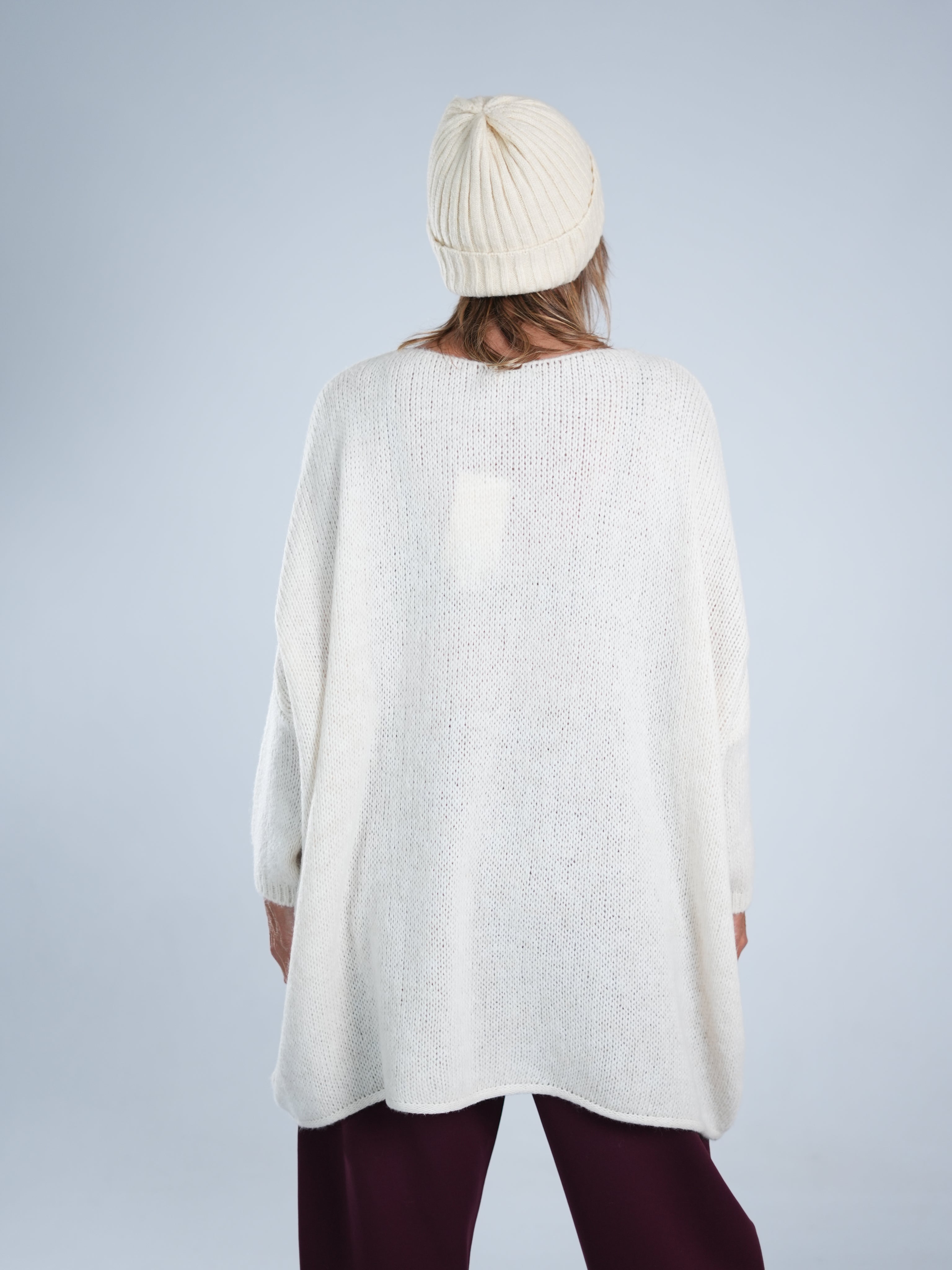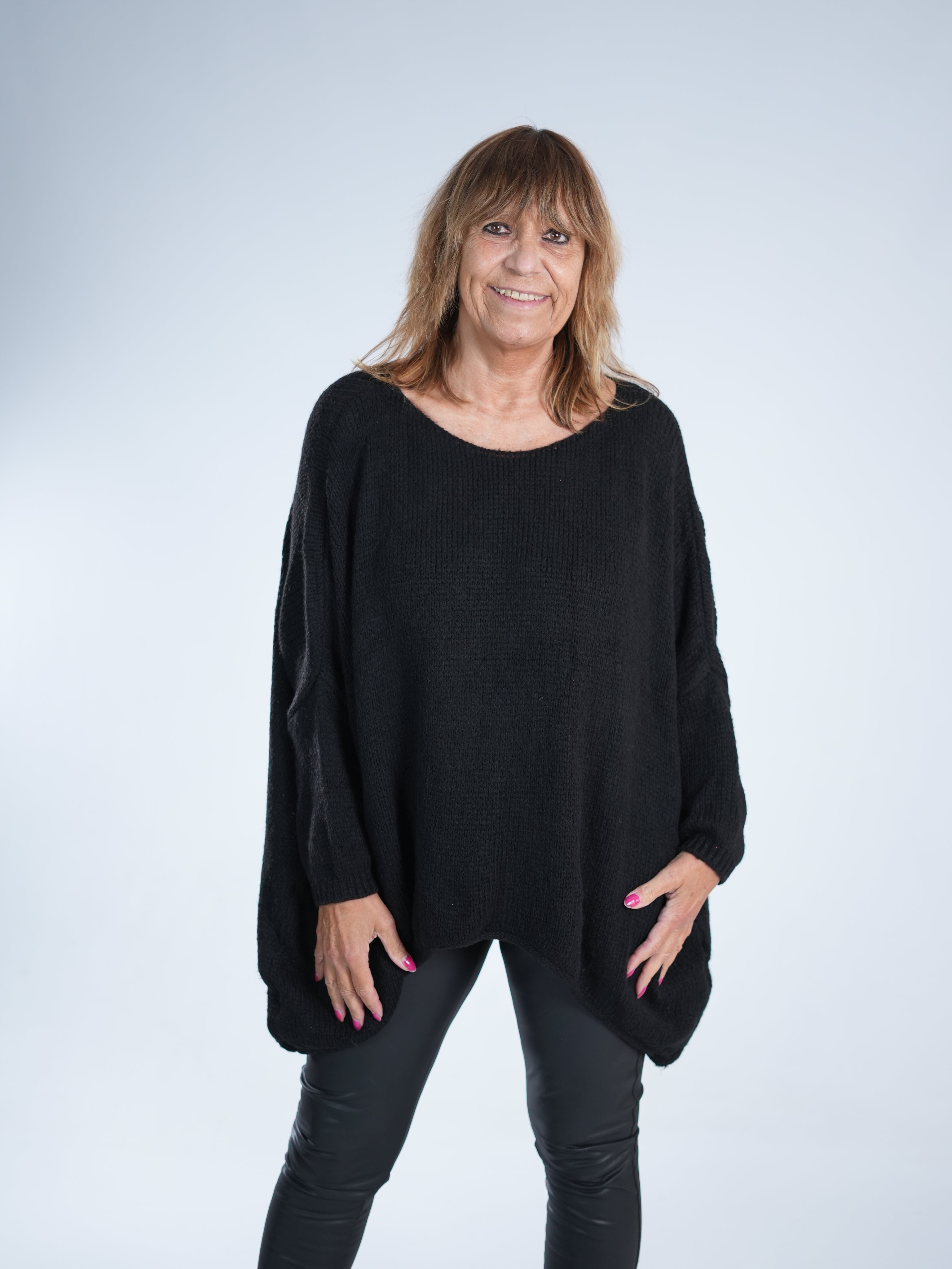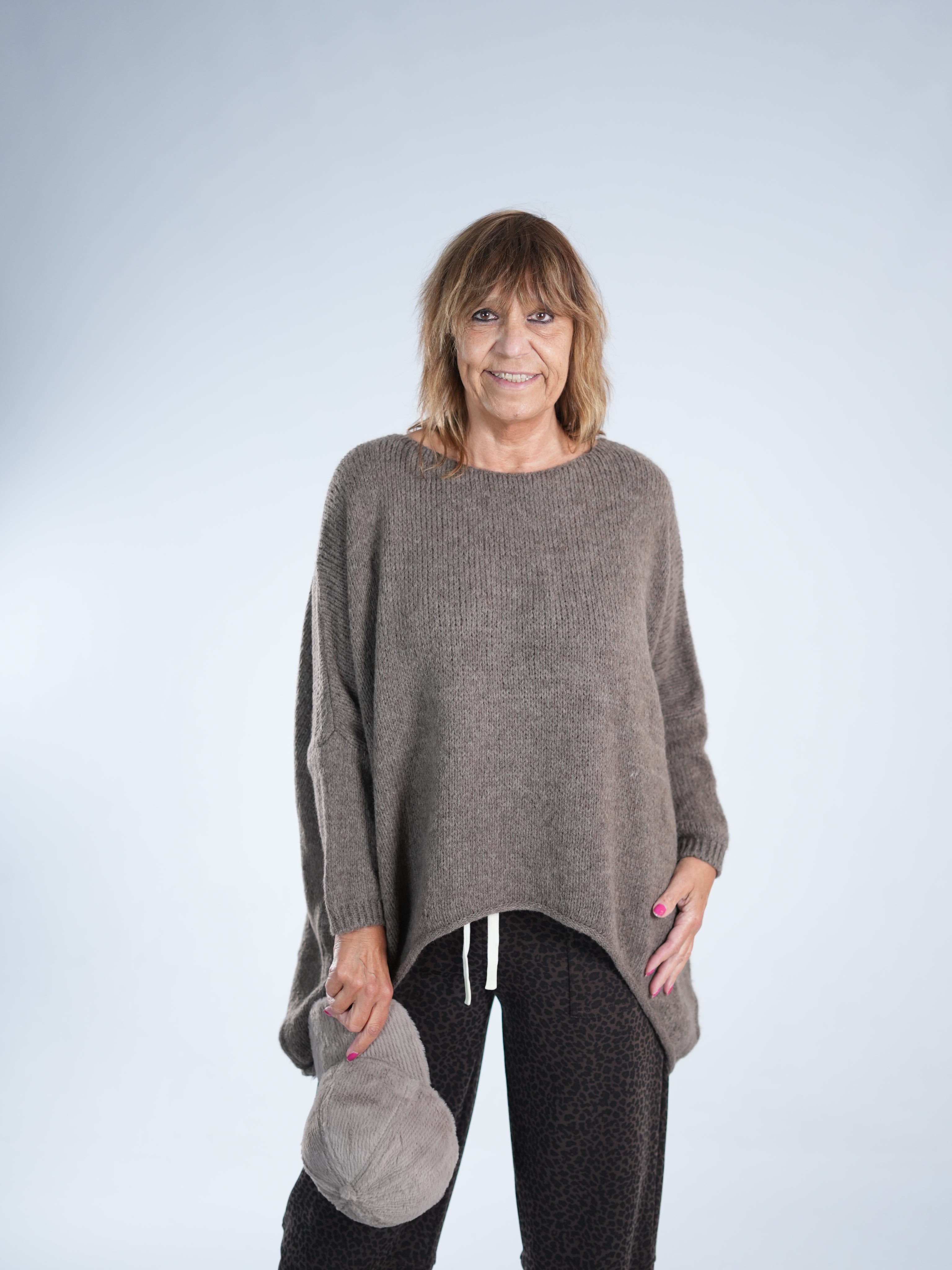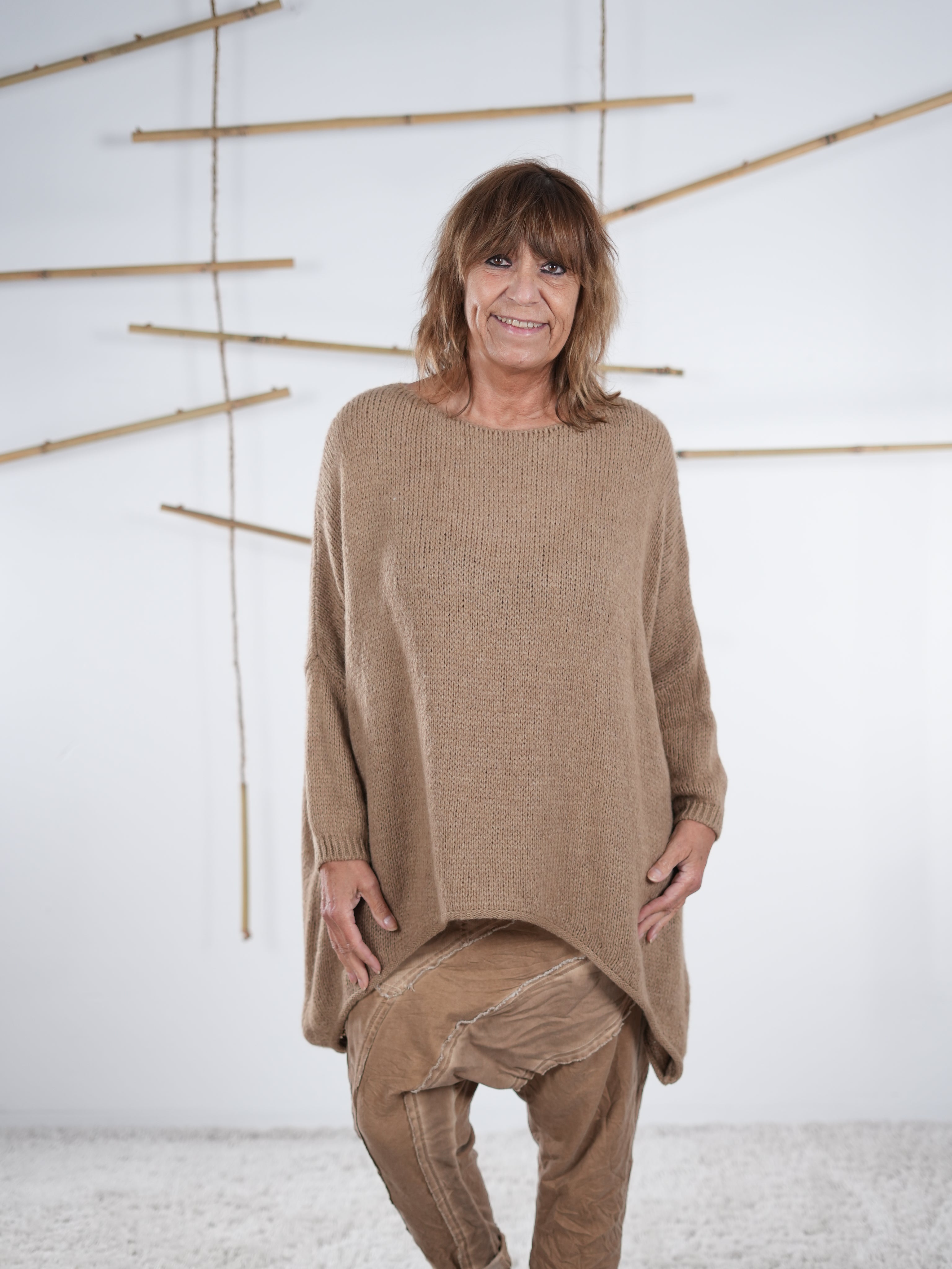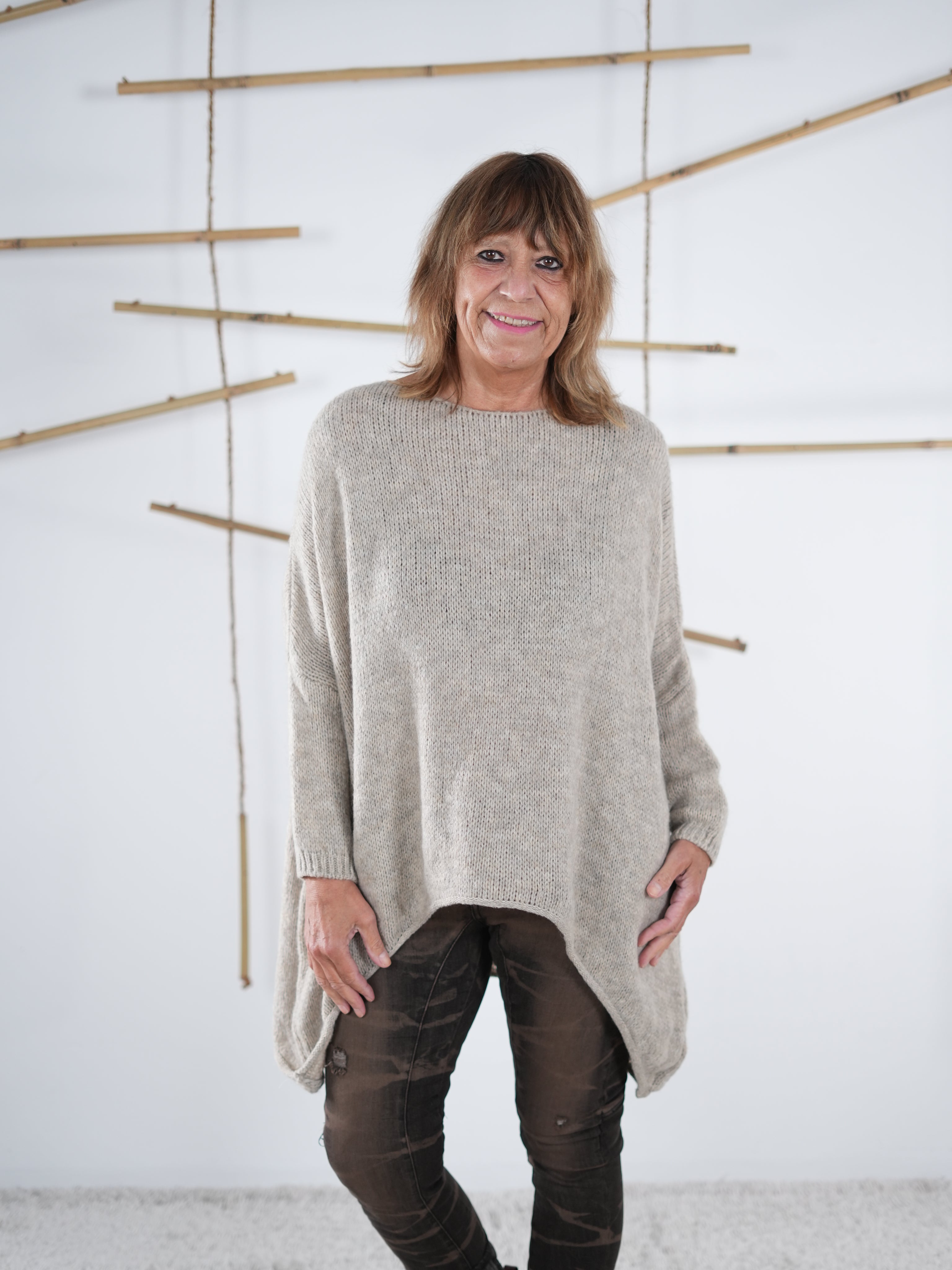 Marion ist 172cm groß und trägt Größe 40/42. Sie ist auf allen Produktbildern zu sehen und präsentiert die wunderschönen onesize Outfits.