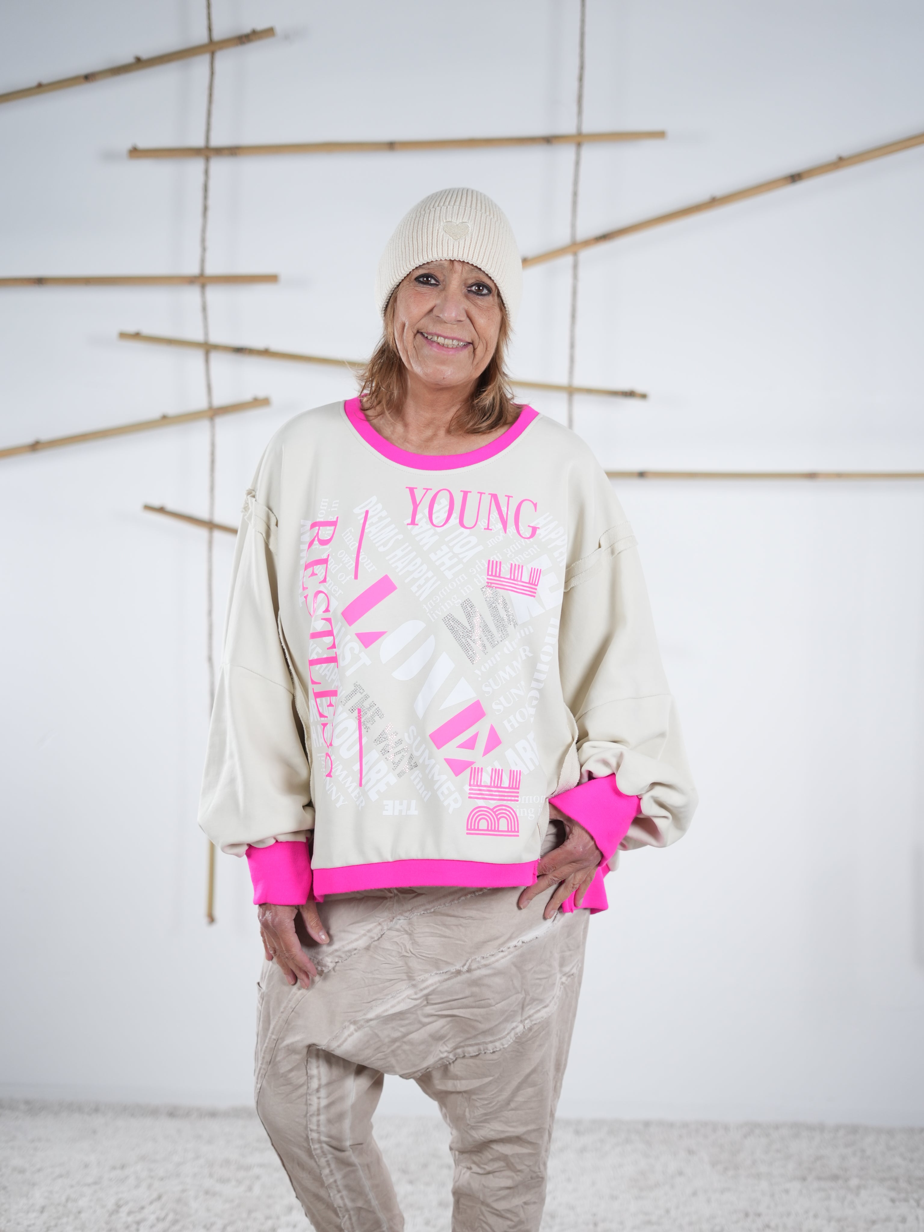 Du liebst Oberteile, die gemütlich sind, lässig fallen und einfach zu allem passen? Dann wirst du unsere Sweaties und Hoodies lieben. Hier findest du moderne, weiche und unkomplizierte Lieblingsstücke für deinen Alltag – perfekt für den Alltag, die City, fürs Homeoffice, für Spaziergänge oder einfach zum Wohlfühlen. Farben wie Beige, Taupe, Camel, Creme oder Schwarz machen jedes Outfit harmonisch und zeitlos.