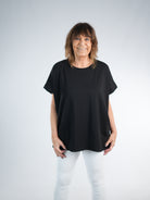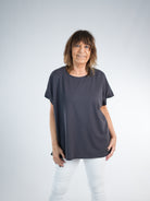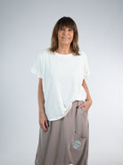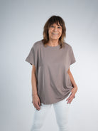 Marion ist 172cm groß und trägt Größe 40/42. Sie ist auf allen Produktbildern zu sehen und präsentiert die wunderschönen onesize Outfits.