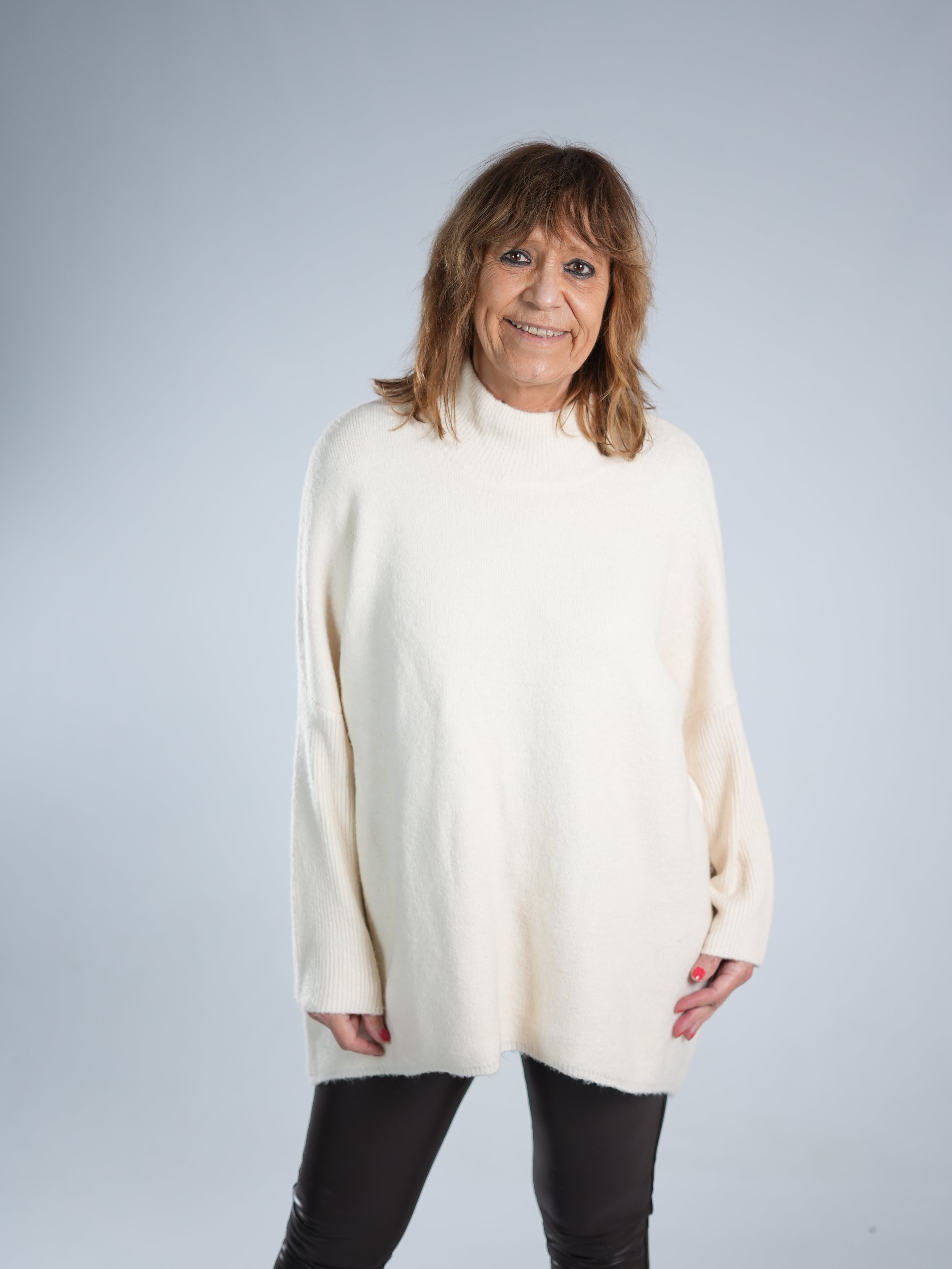 Marion ist 172cm groß und trägt Größe 40/42. Sie ist auf allen Produktbildern zu sehen und präsentiert die wunderschönen onesize Outfits.