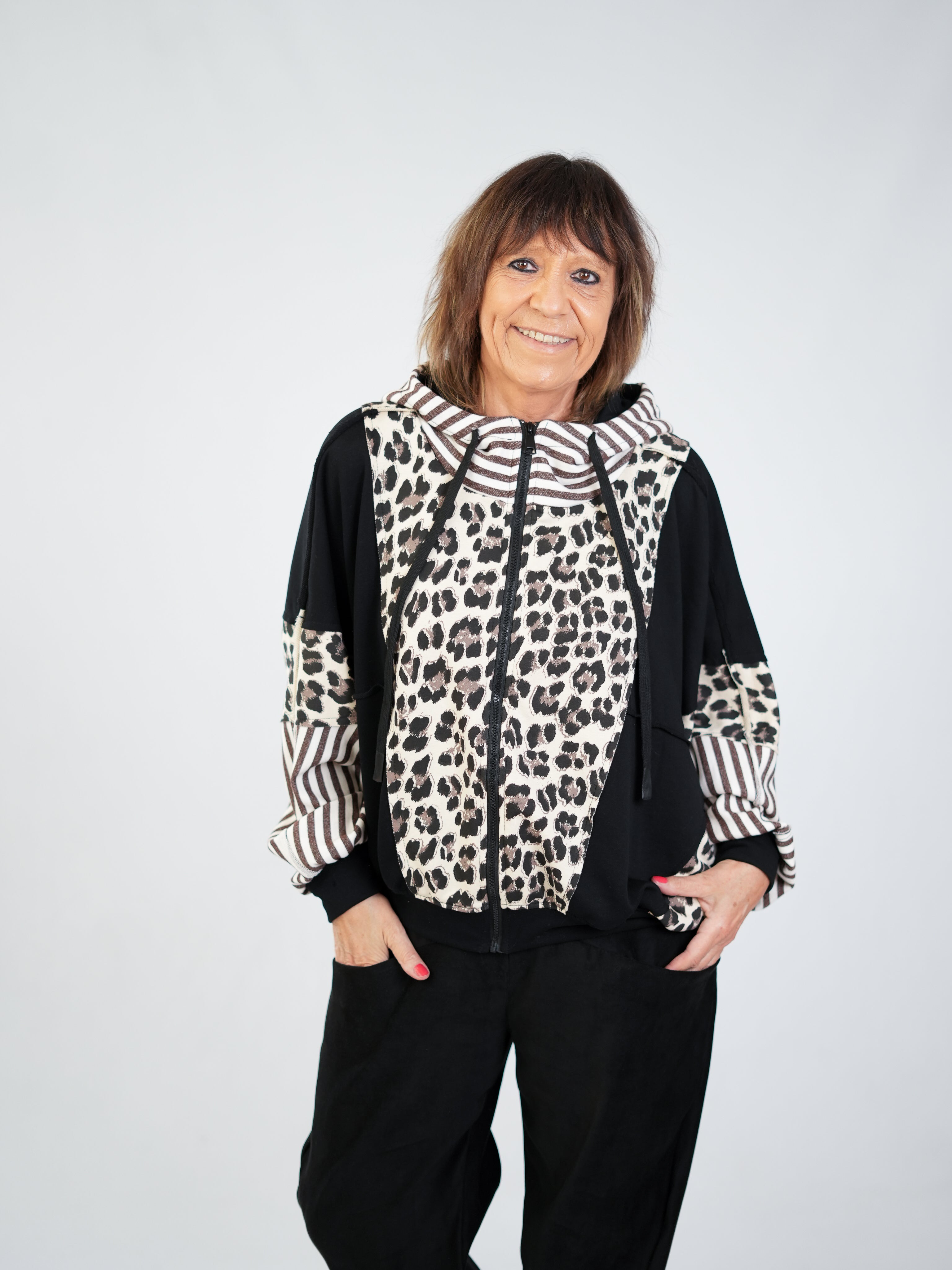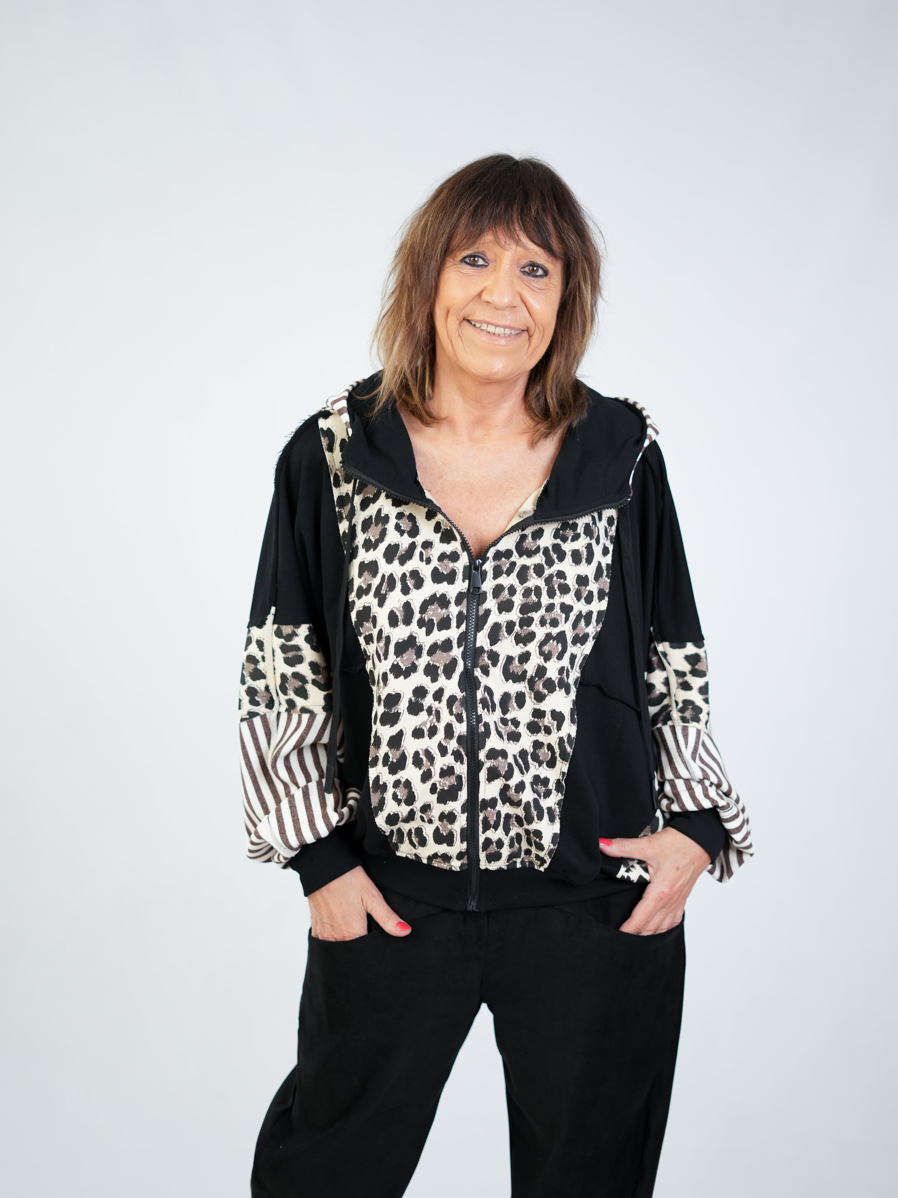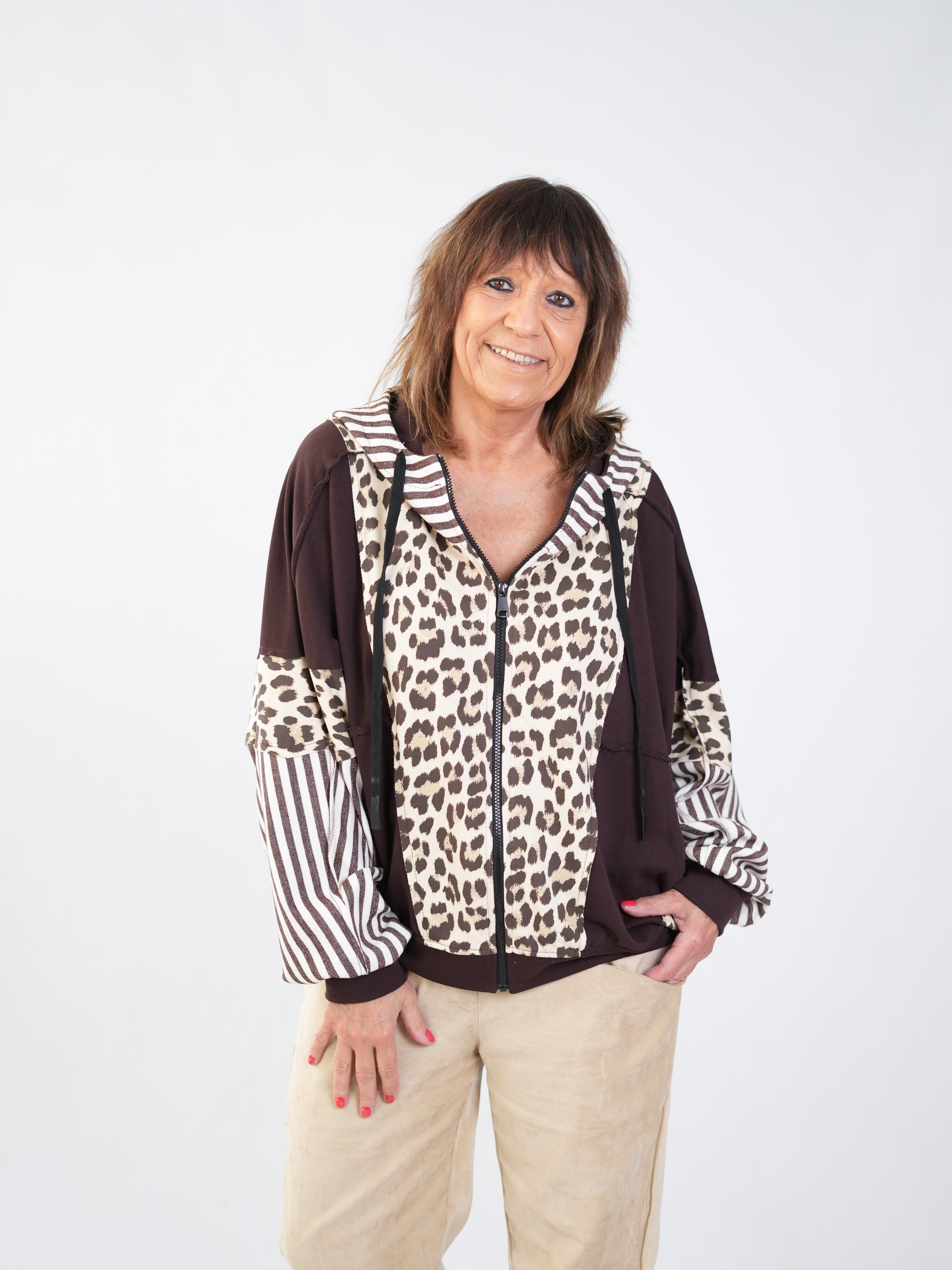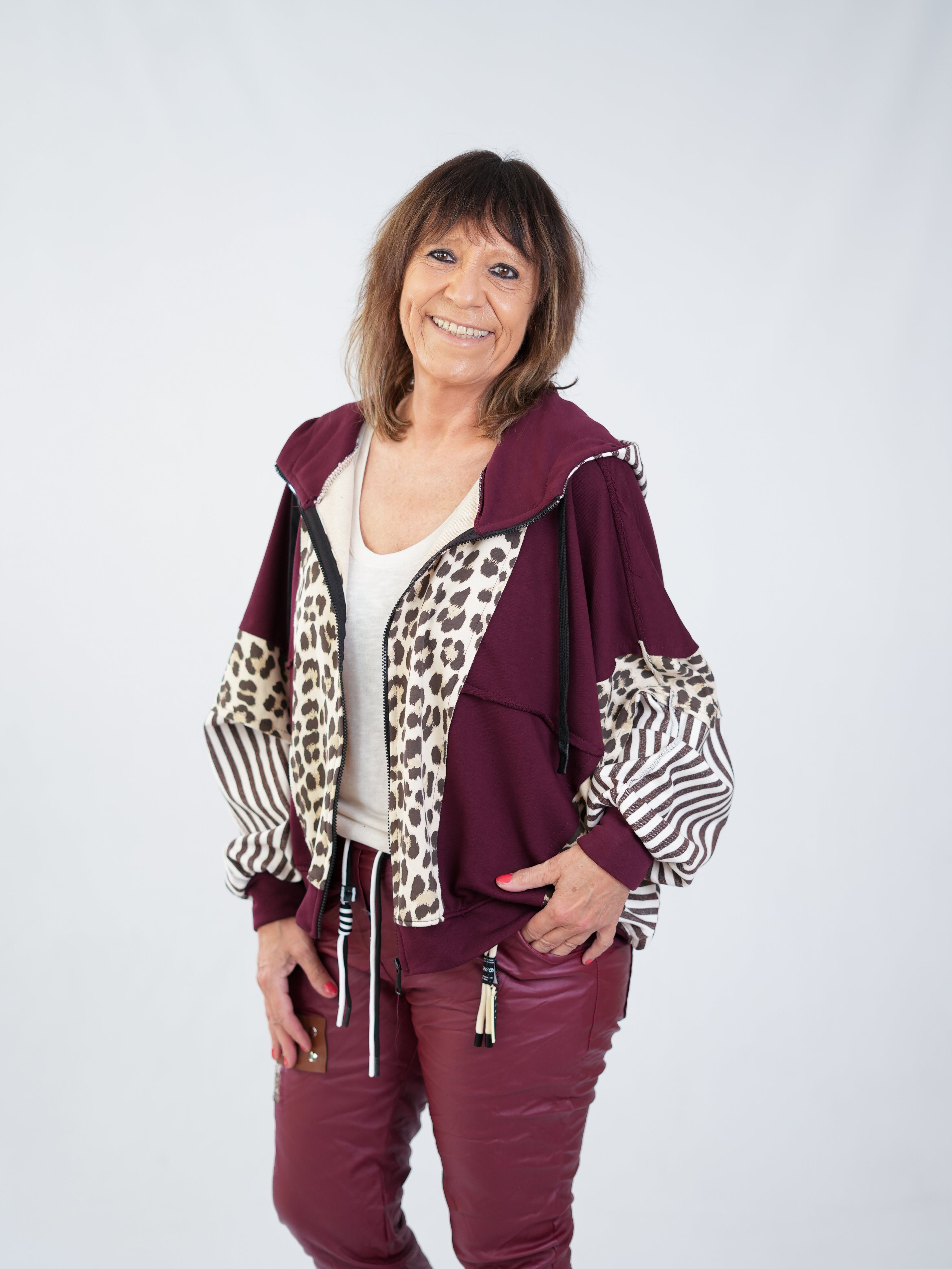Marion ist 172cm groß und trägt Größe 40/42. Sie ist auf allen Produktbildern zu sehen und präsentiert die wunderschönen onesize Outfits.