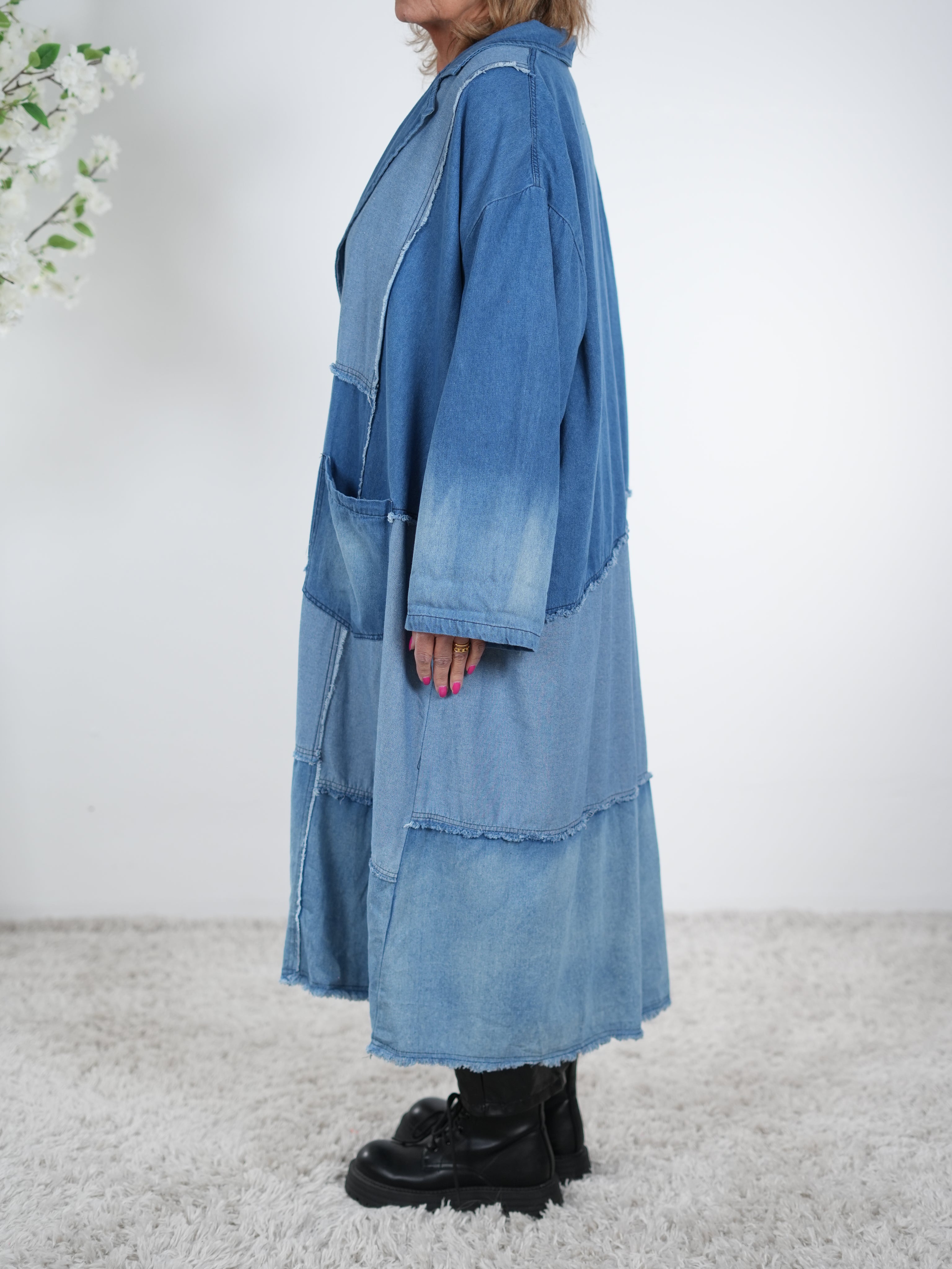 Ausgefallener Jeans Mantel mit fransigen Nähten