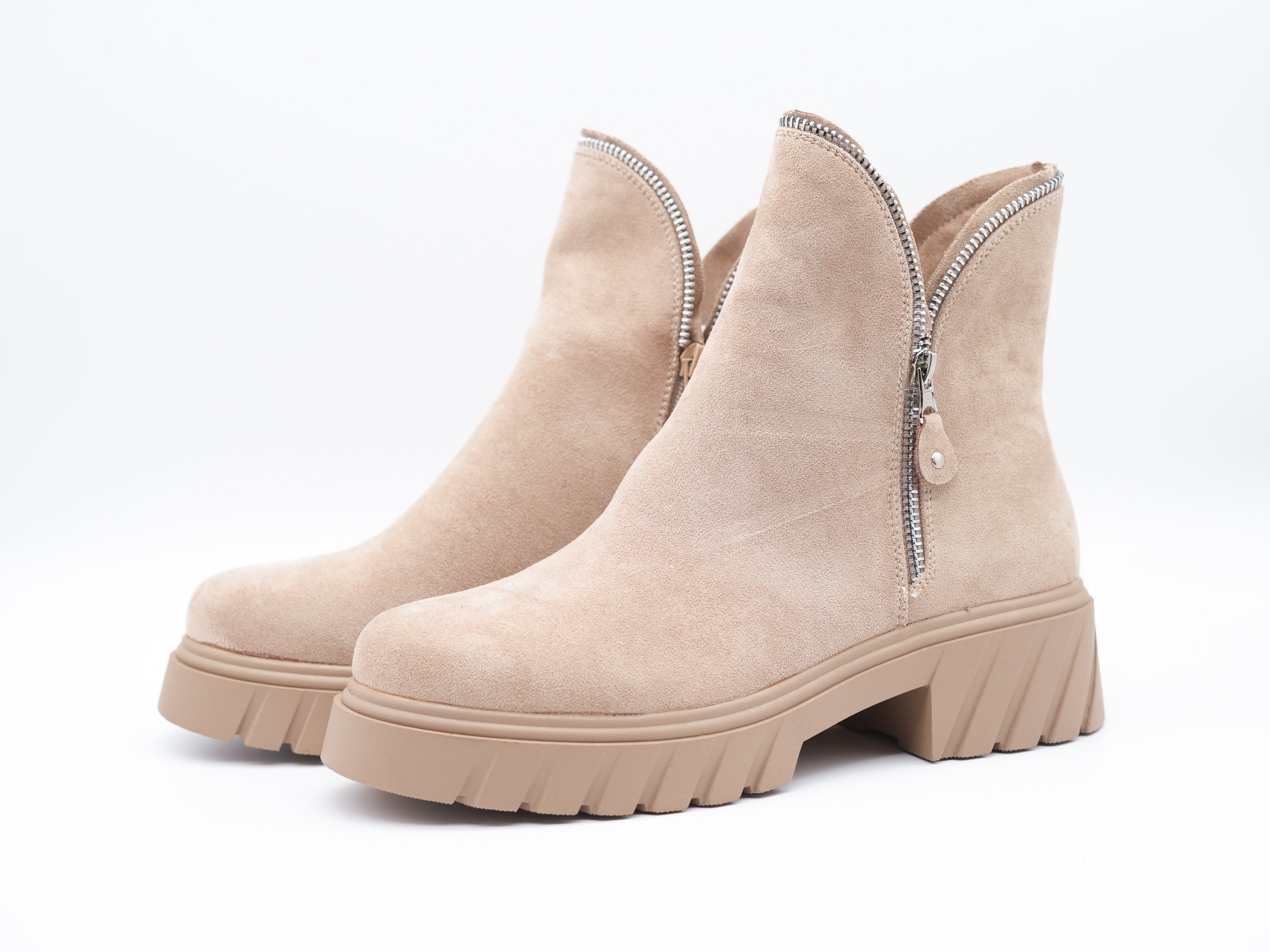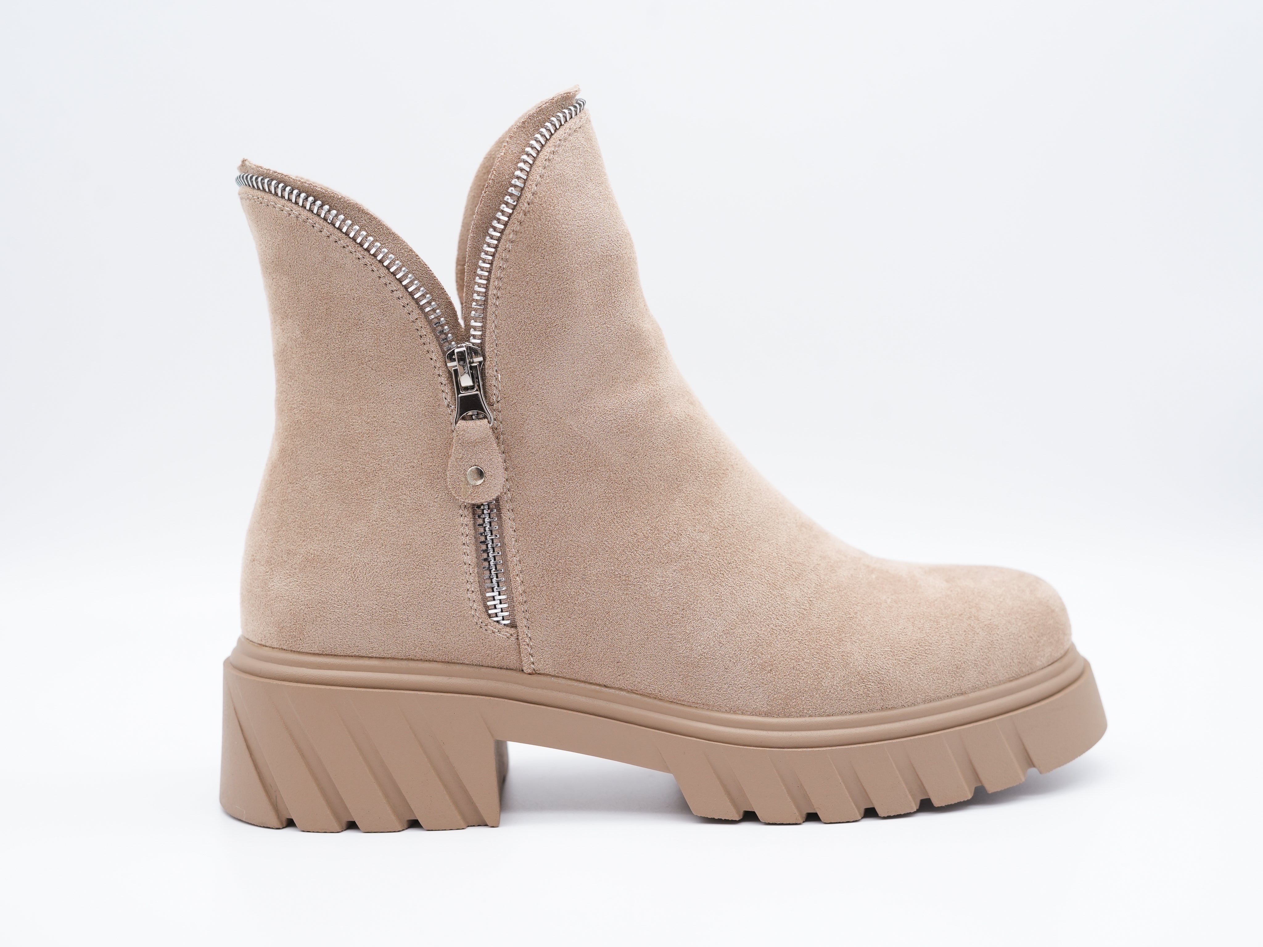 Dieser tolle Bootie in Velouroptik punktet mit einem dekorativen Zierreißverschluss außen und einem praktischen Reißverschluss an der Innenseite– super einfach zum An- und Ausziehen.
