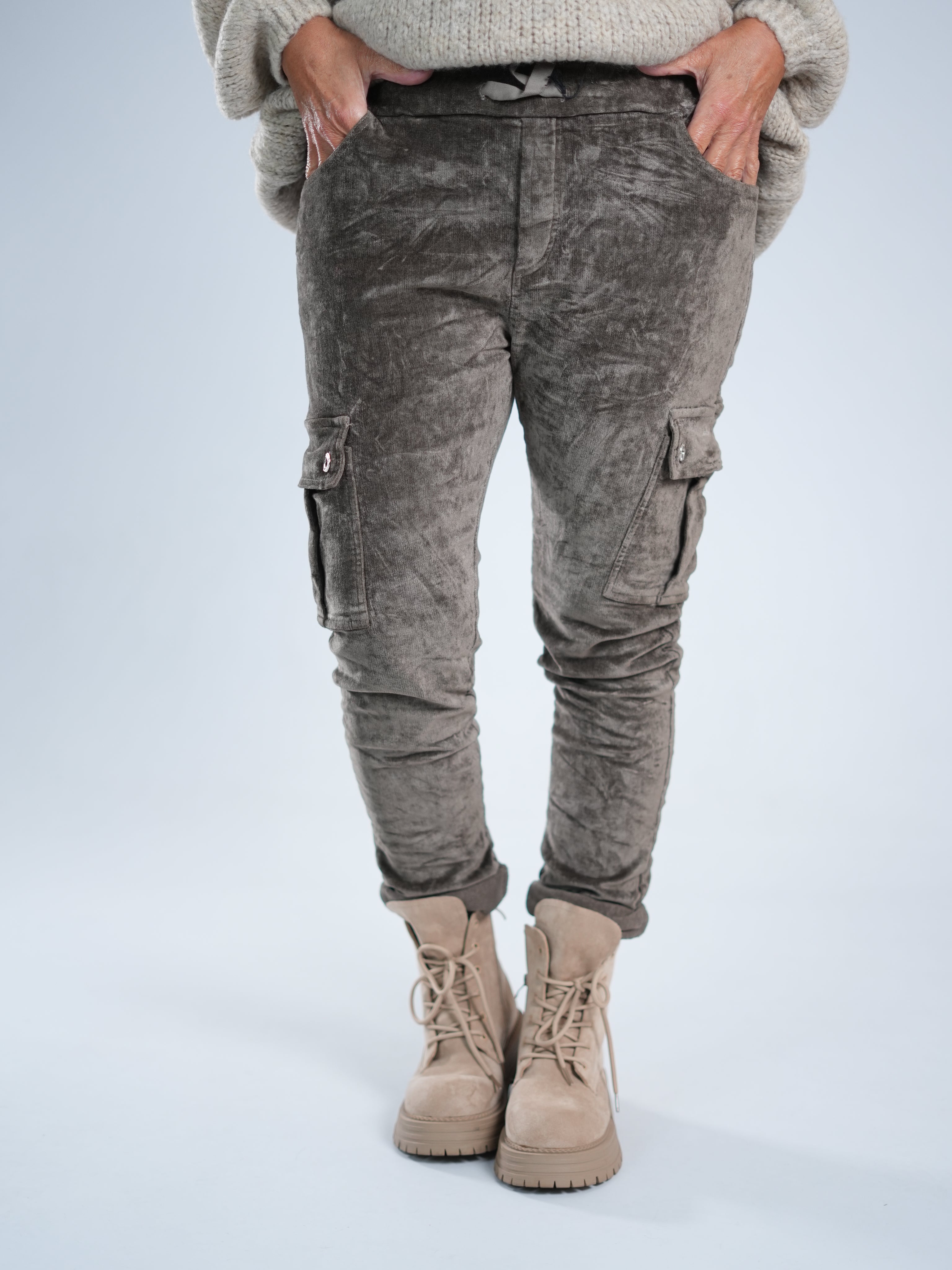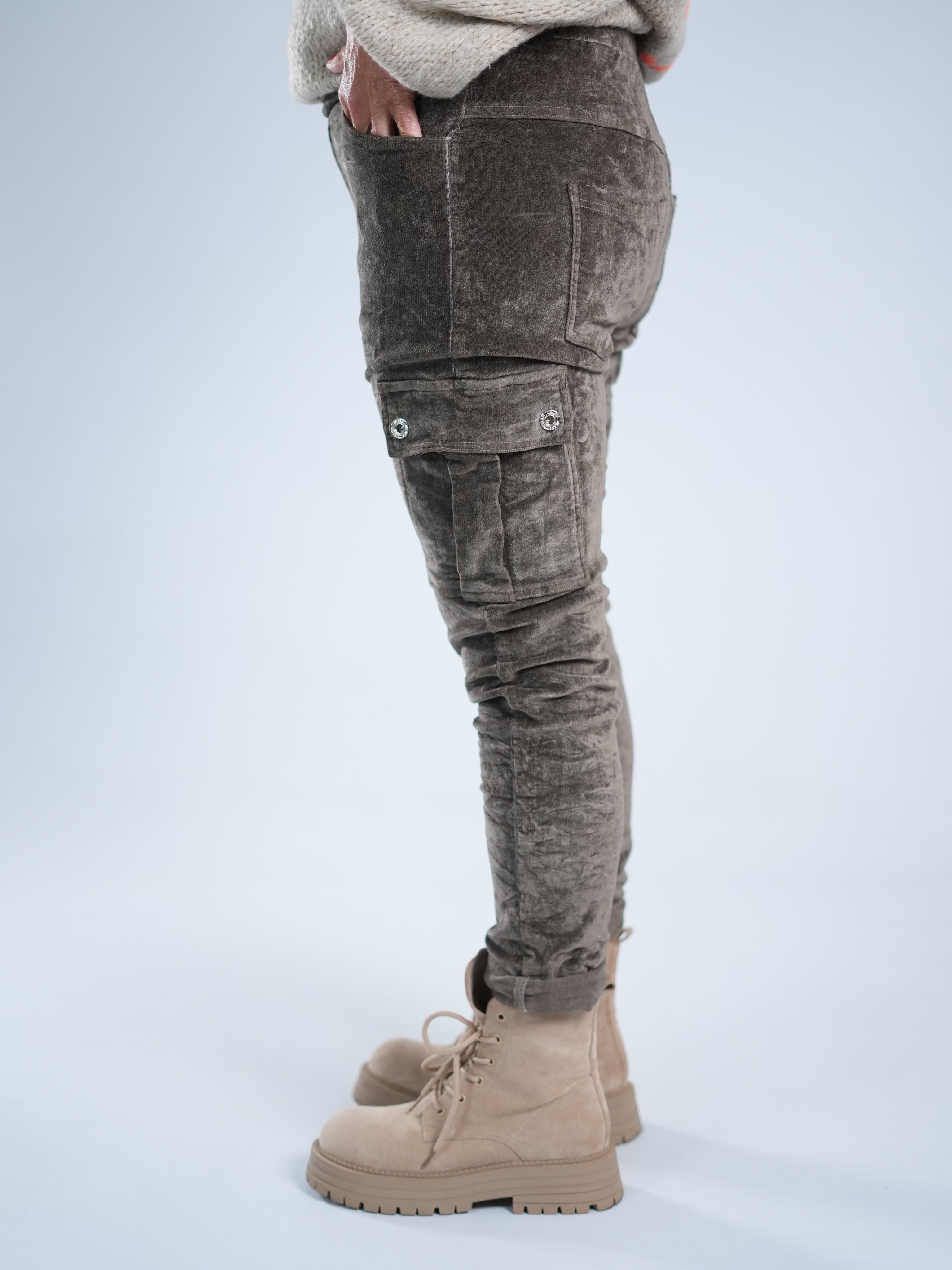 Diese super softe Cargo-Hose aus Feincord-Samt überzeugt mit ihrem angenehmen Material und coolen Look. Sie hat zwei Taschen an den Oberschenkeln und sitzt rundum bequem.