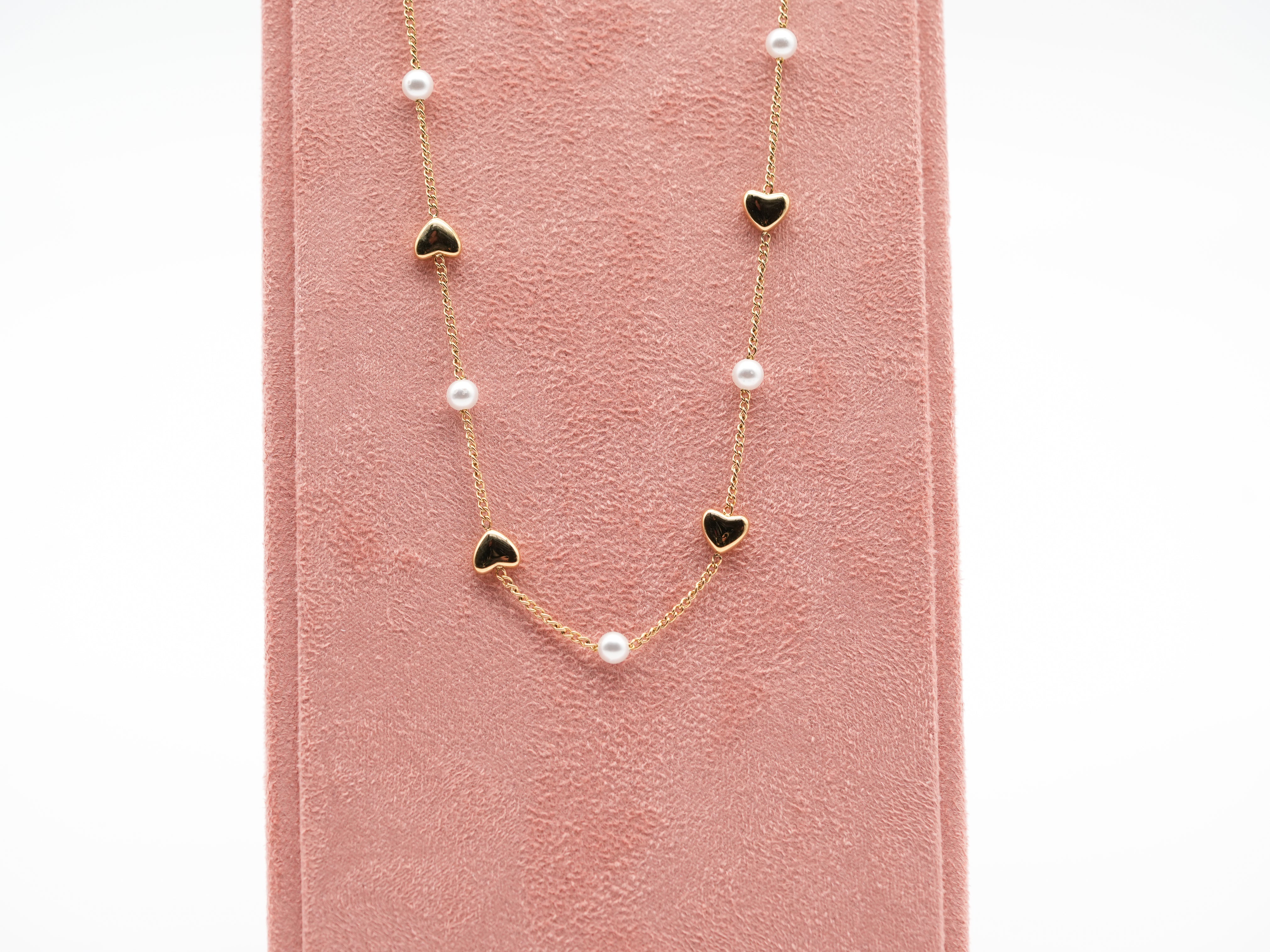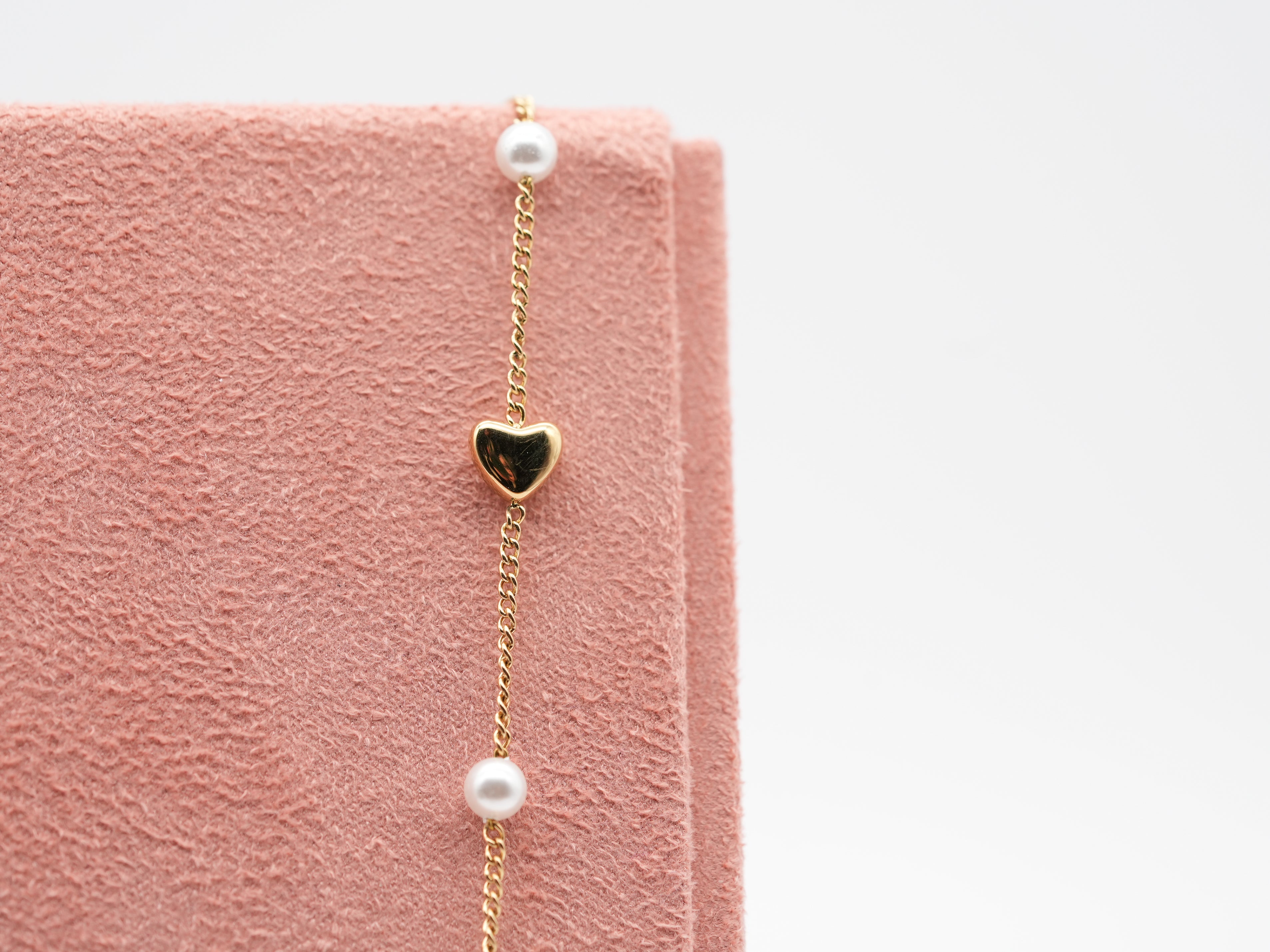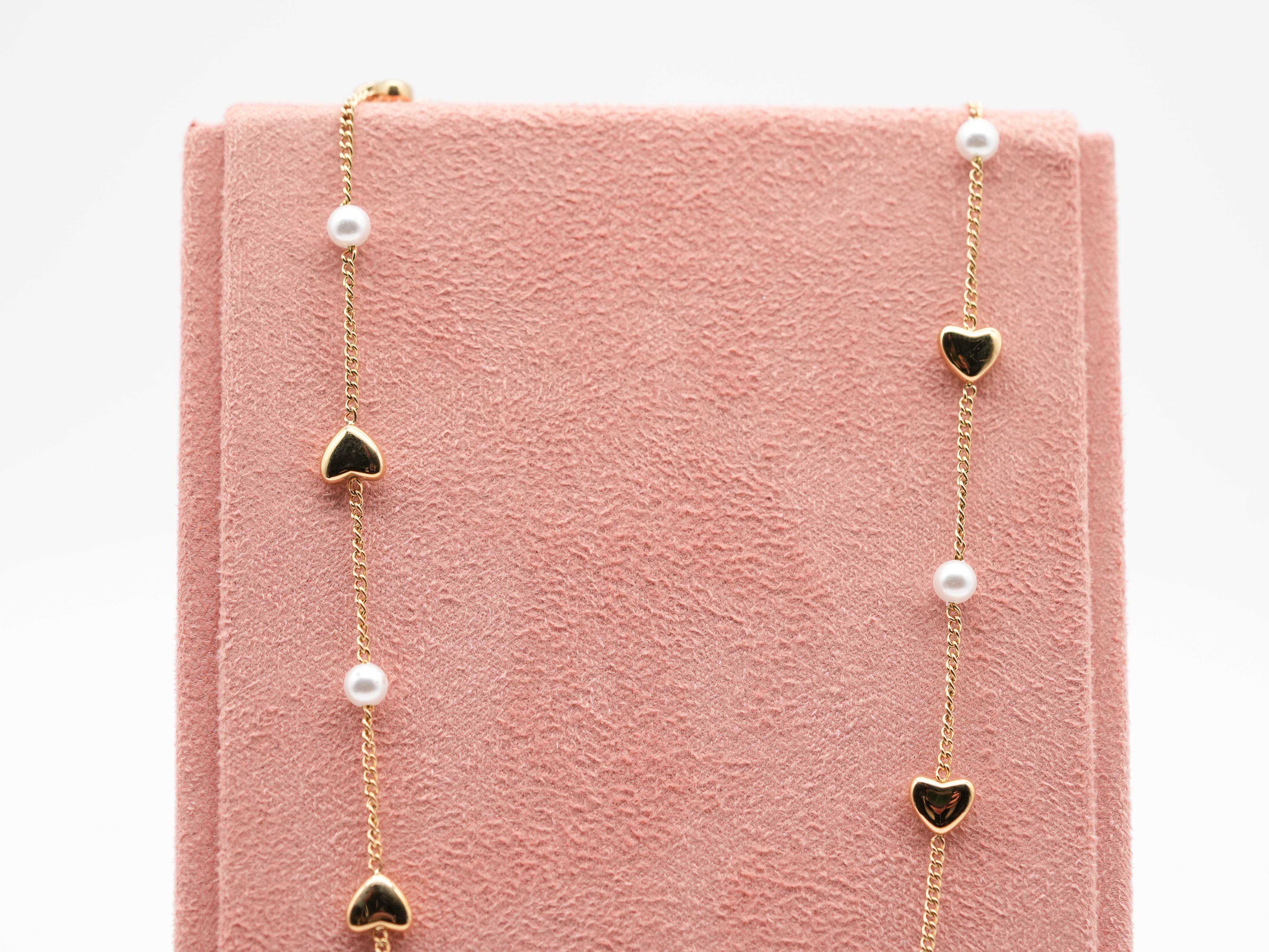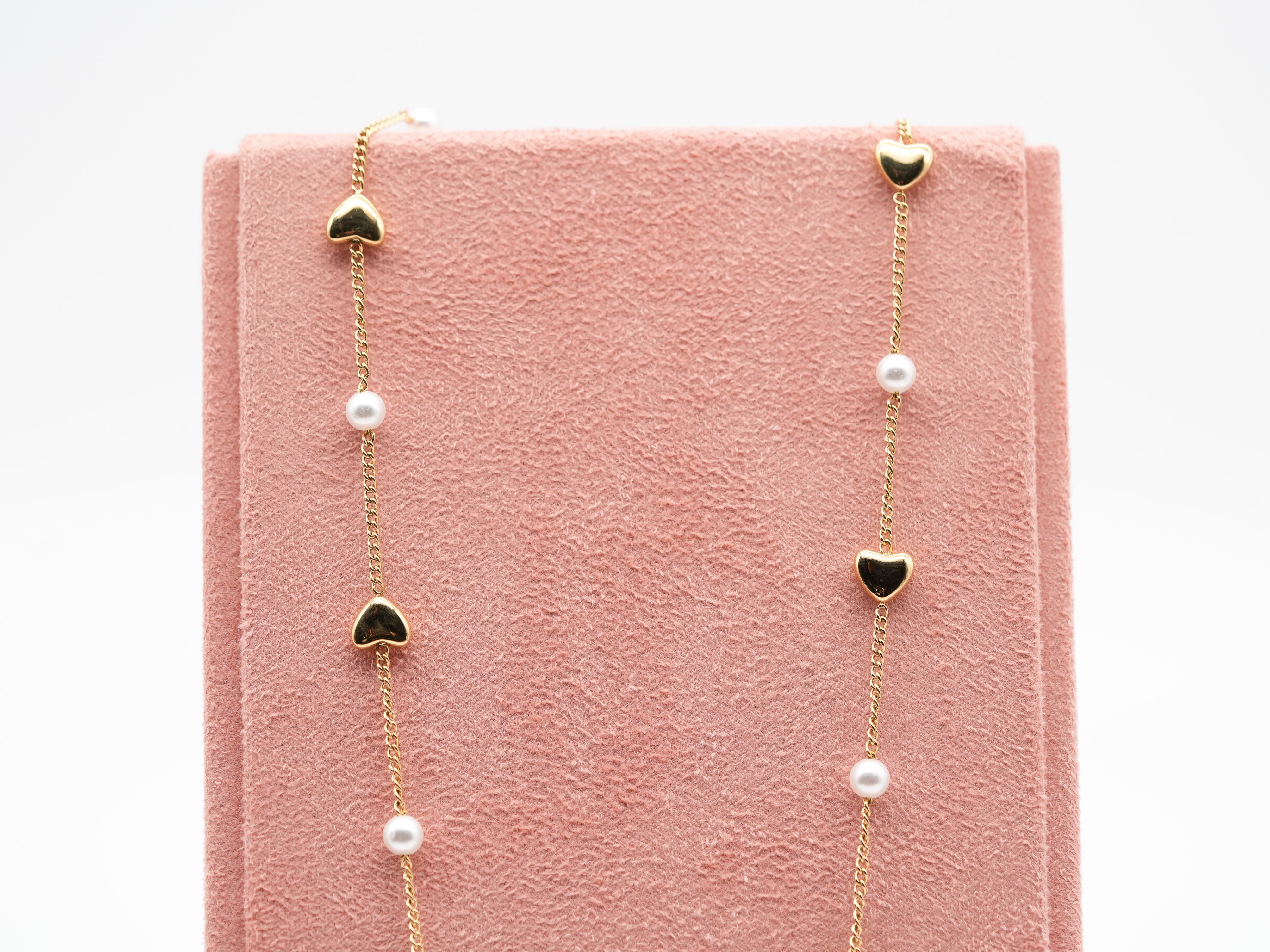 Diese wunderschöne Halskette kombiniert sanfte Herzchen mit kleinen Perlen zu einem feinen Kettchen, dessen gleichmäßiger Rhythmus eine schöne Leichtigkeit bringt und das sich wunderbar zu allem tragen lässt. Die Kette ist aus hochwertigem Edelstahl gefertigt, was bedeutet, dass sie langlebig, hautfreundlich und in einem schönen Goldton erhältlich ist. Ob allein oder im Mix mit anderen Schmuckstücken – sie passt sich jeden Look an und setzt so hübsche, feminine Akzente. Ein Schmuckstück mit Gefühl, das jedes Outfit hübsch veredelt.