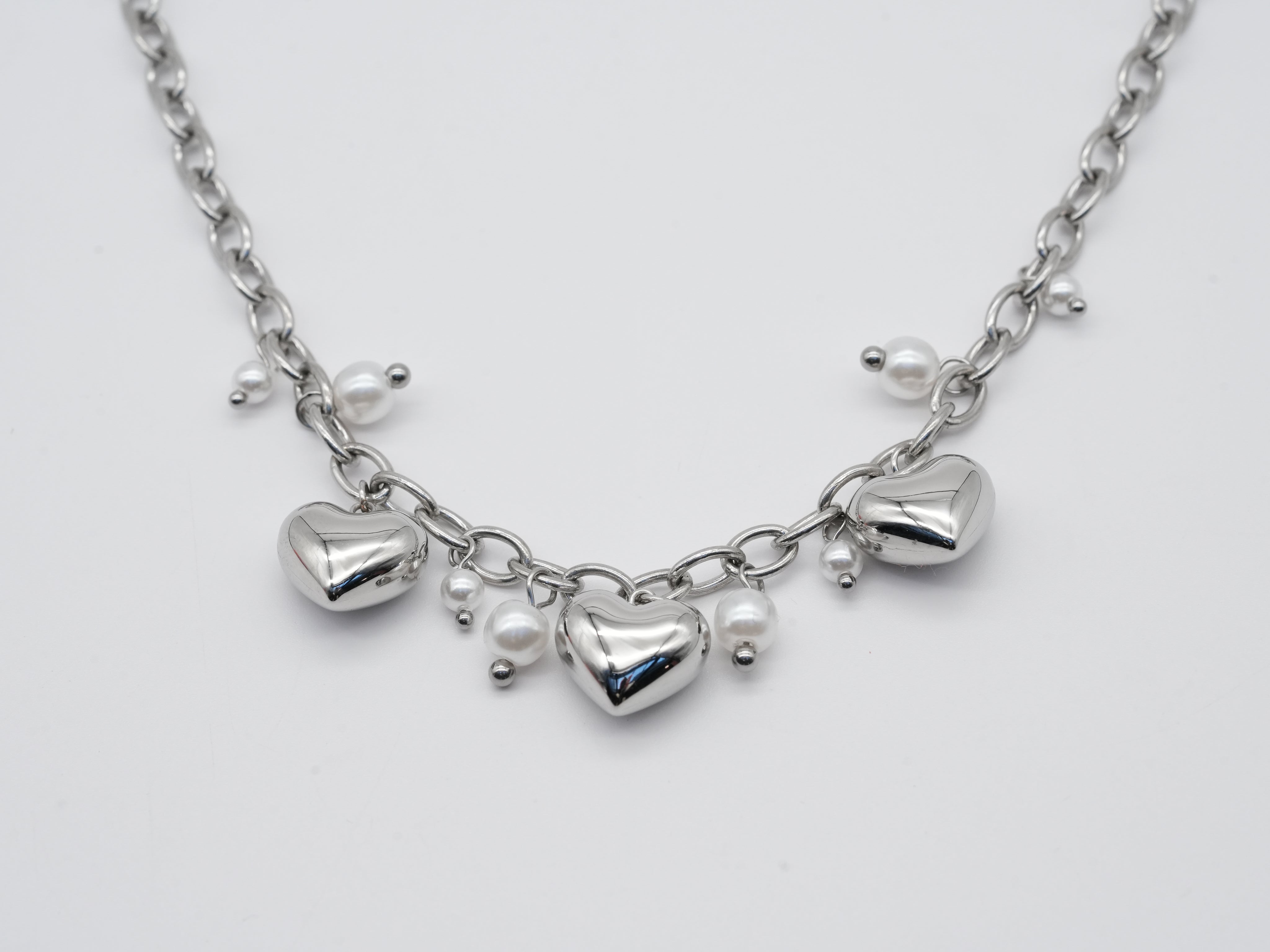 Edelstahlhalskette mit Herzen & Perlen