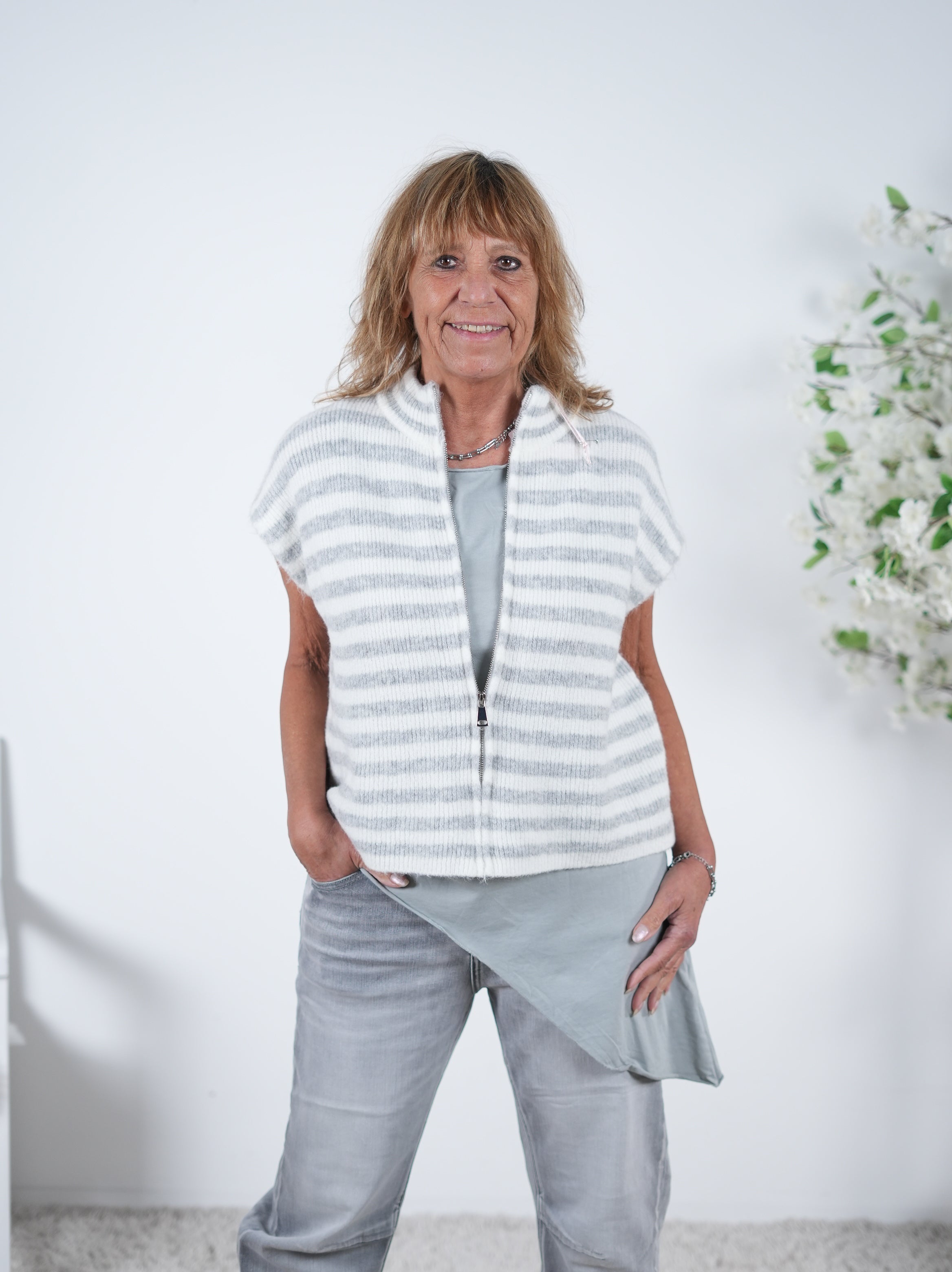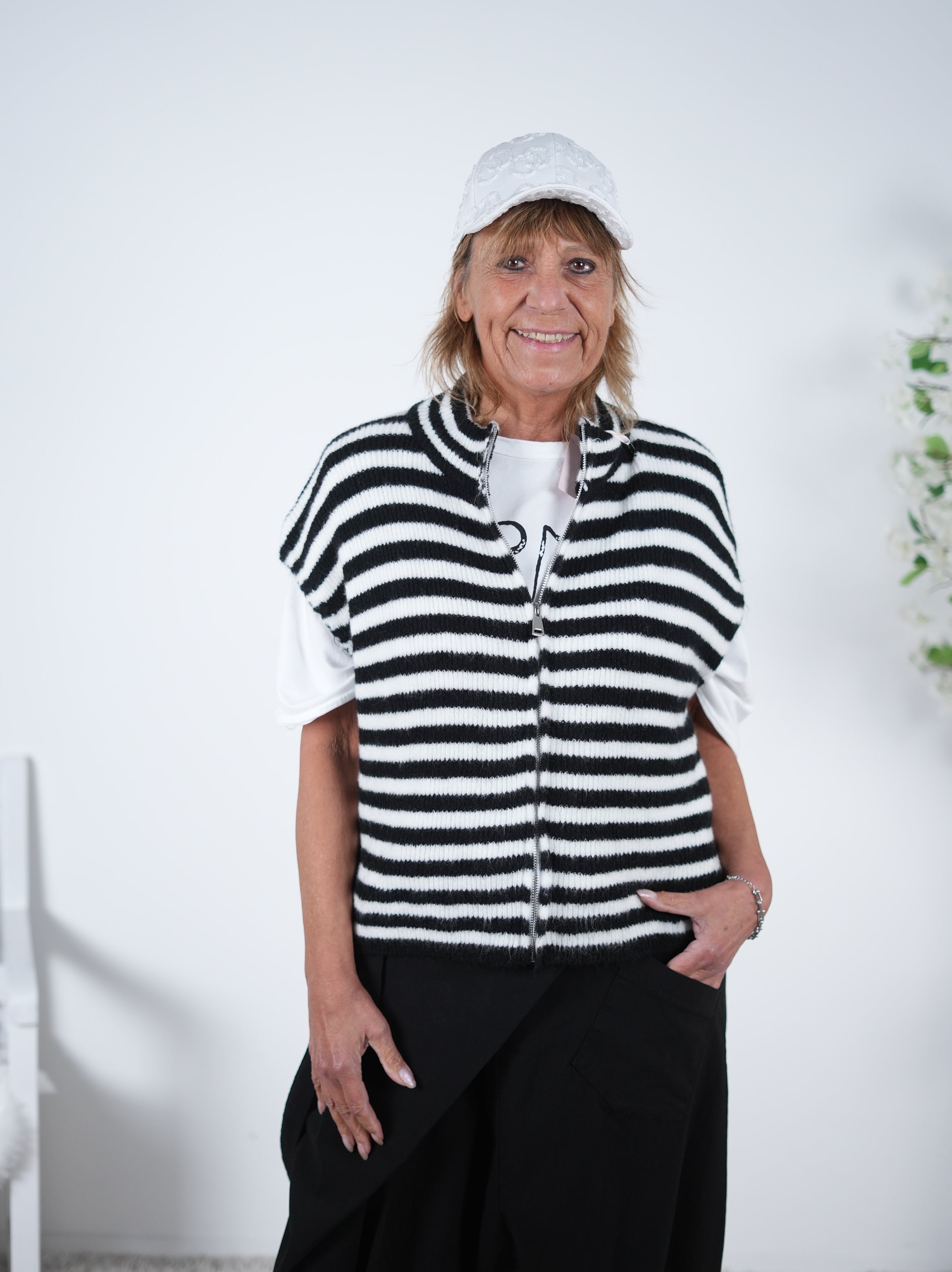 Gestreifte Strick-Weste mit Reißverschluss