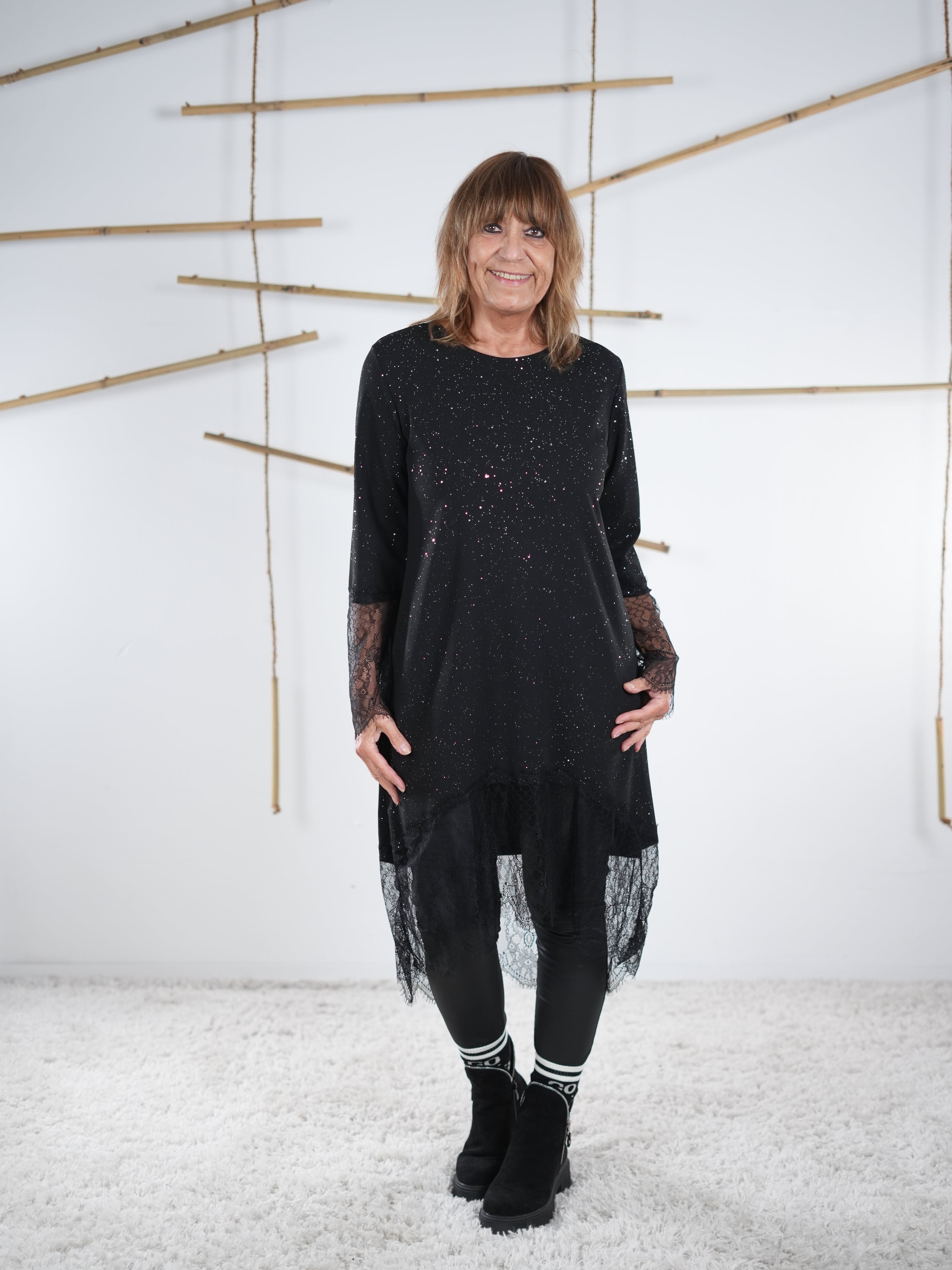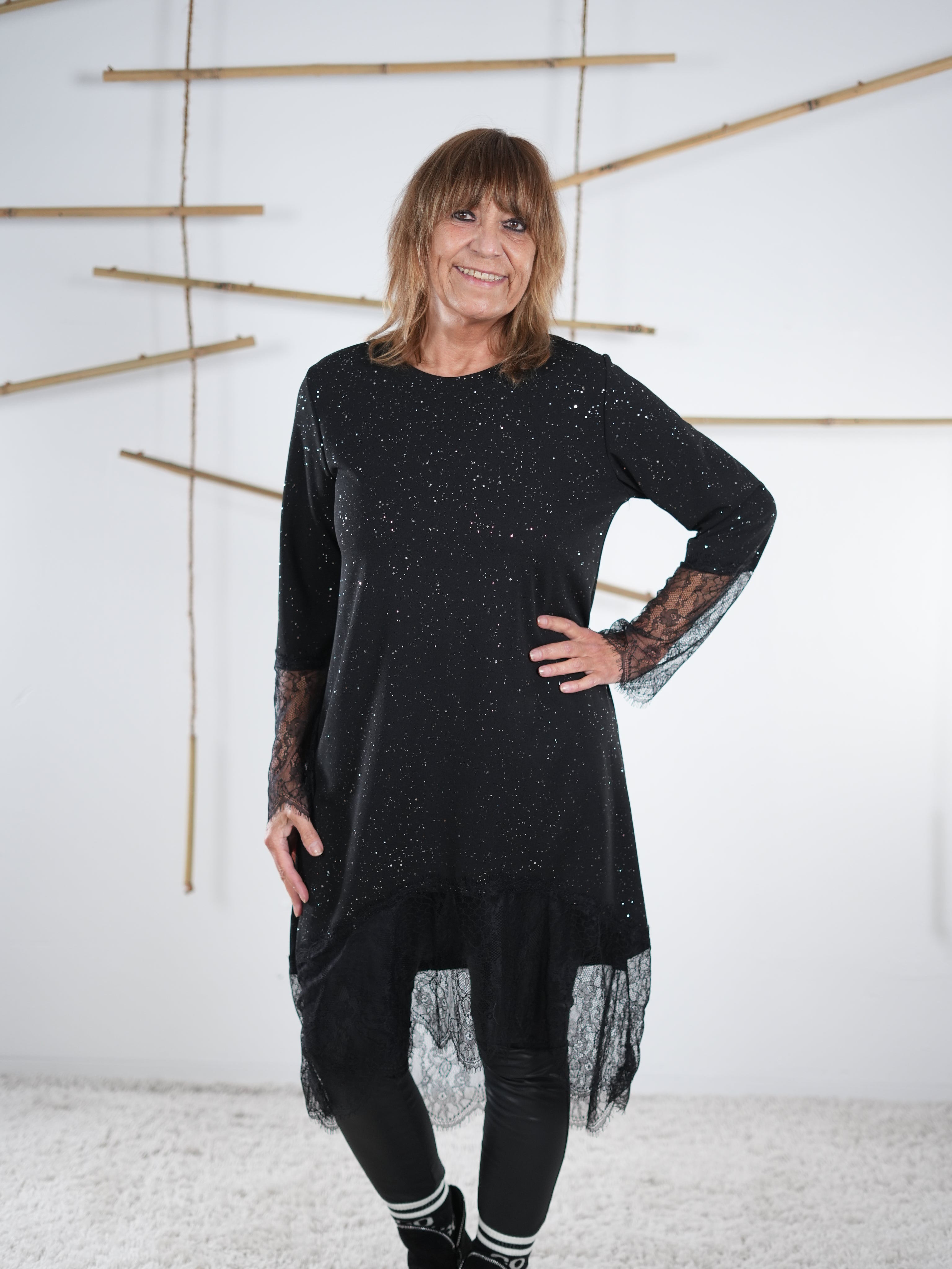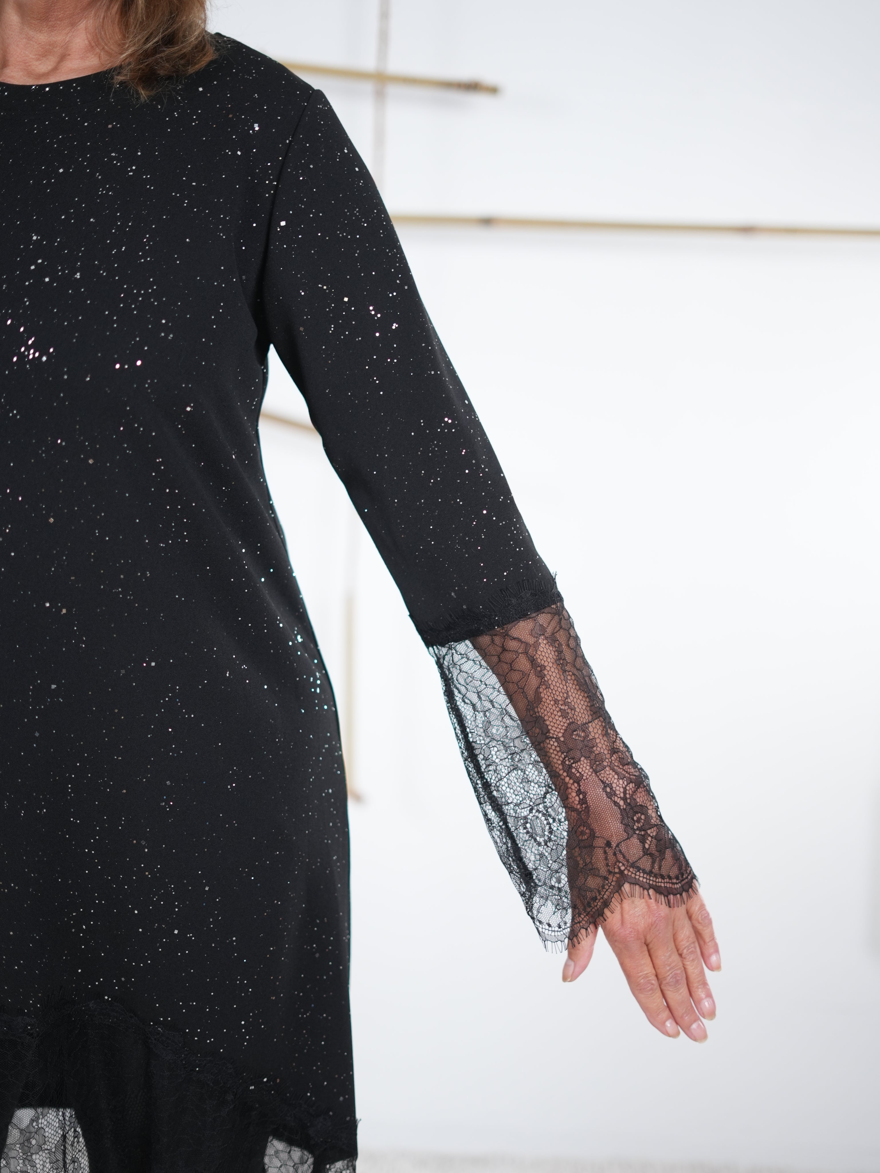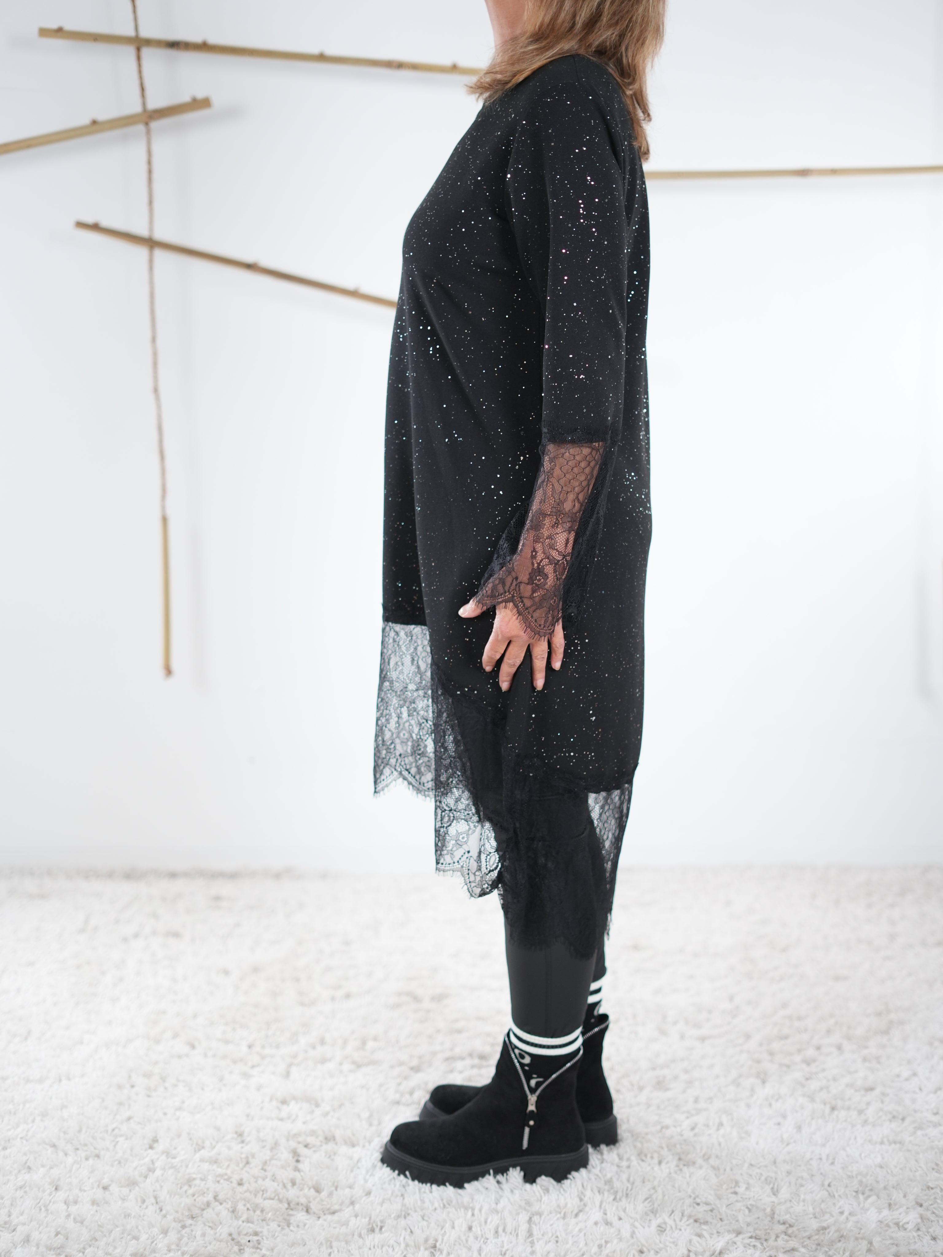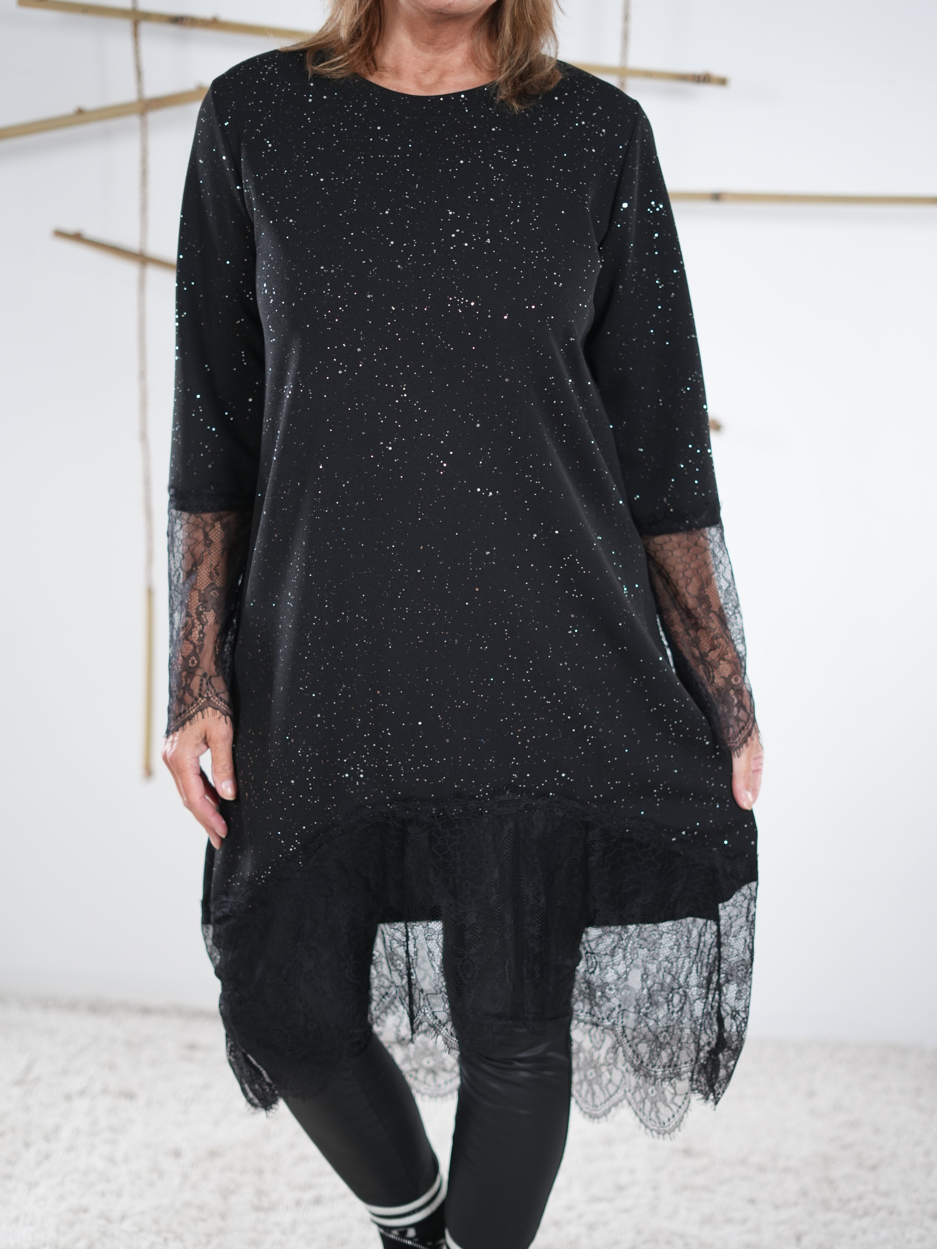 Glitzerndes Kleid mit Spitze