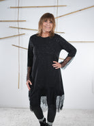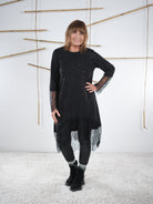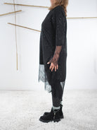 Marion ist 172cm groß und trägt Größe 40/42. Sie ist auf allen Produktbildern zu sehen und präsentiert die wunderschönen onesize Outfits.