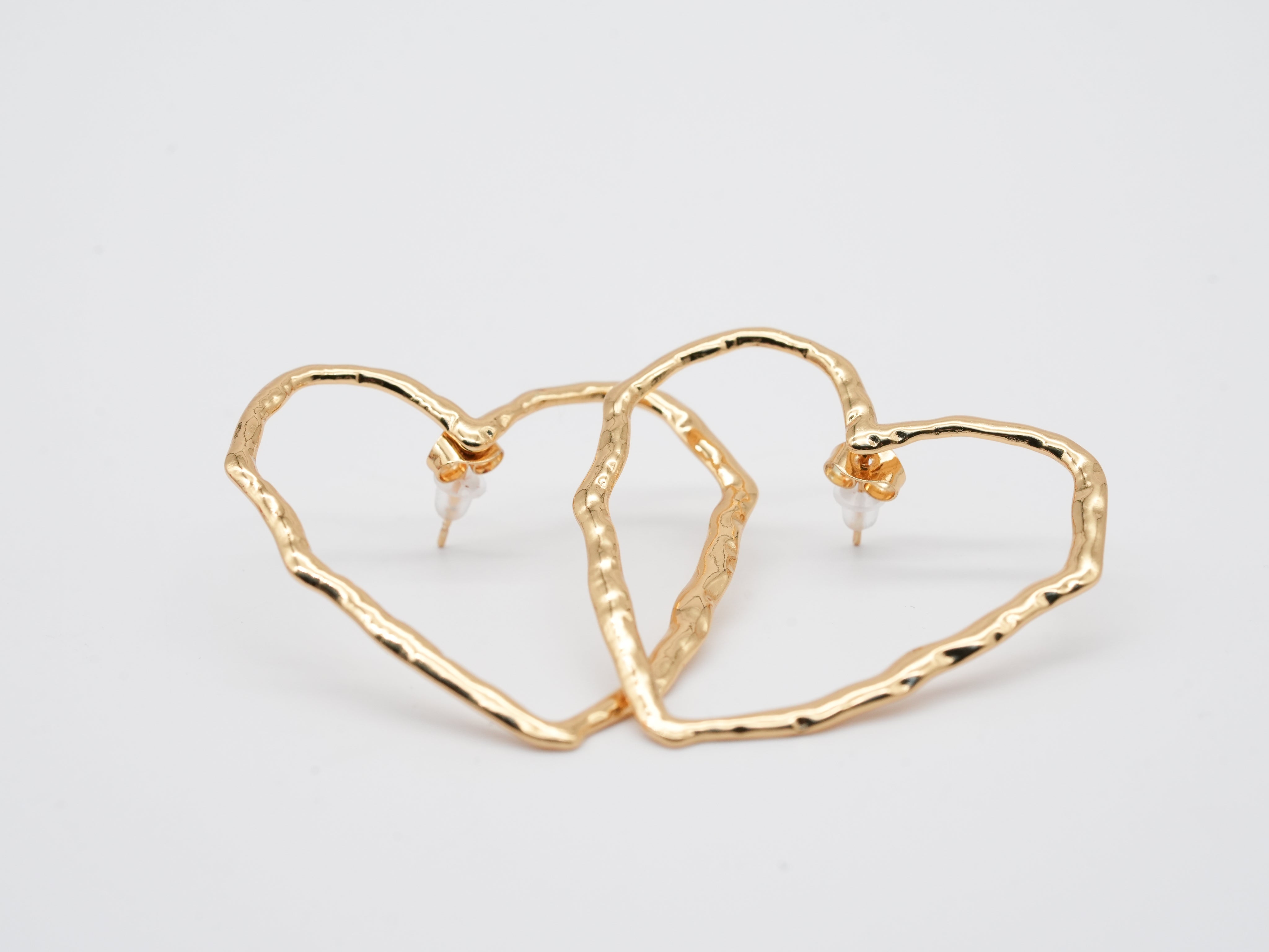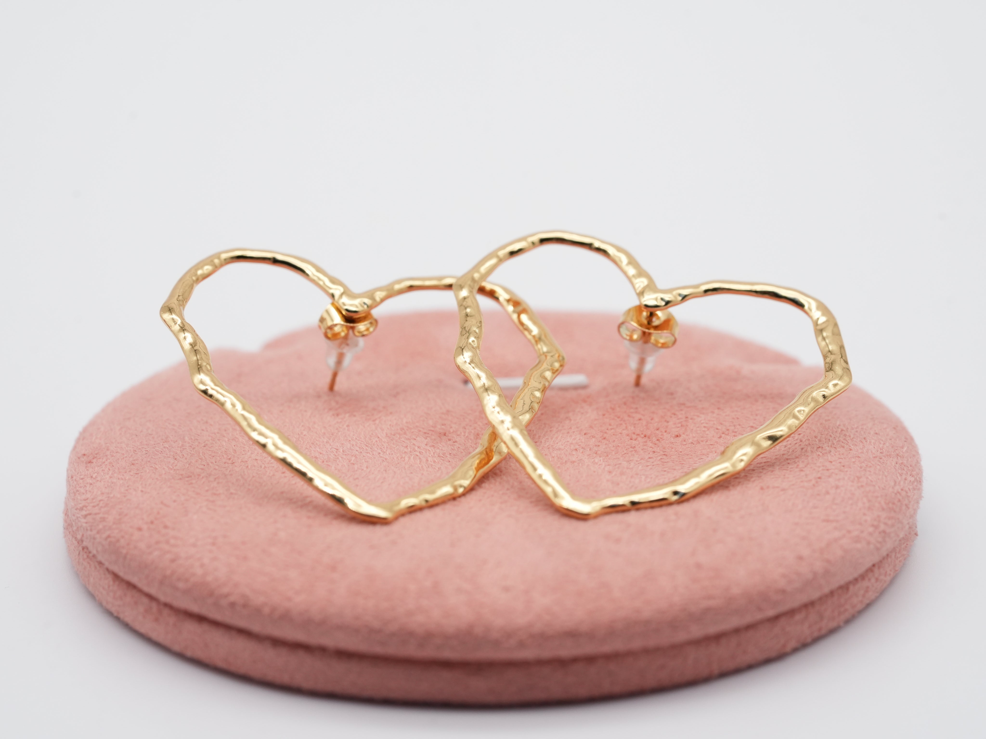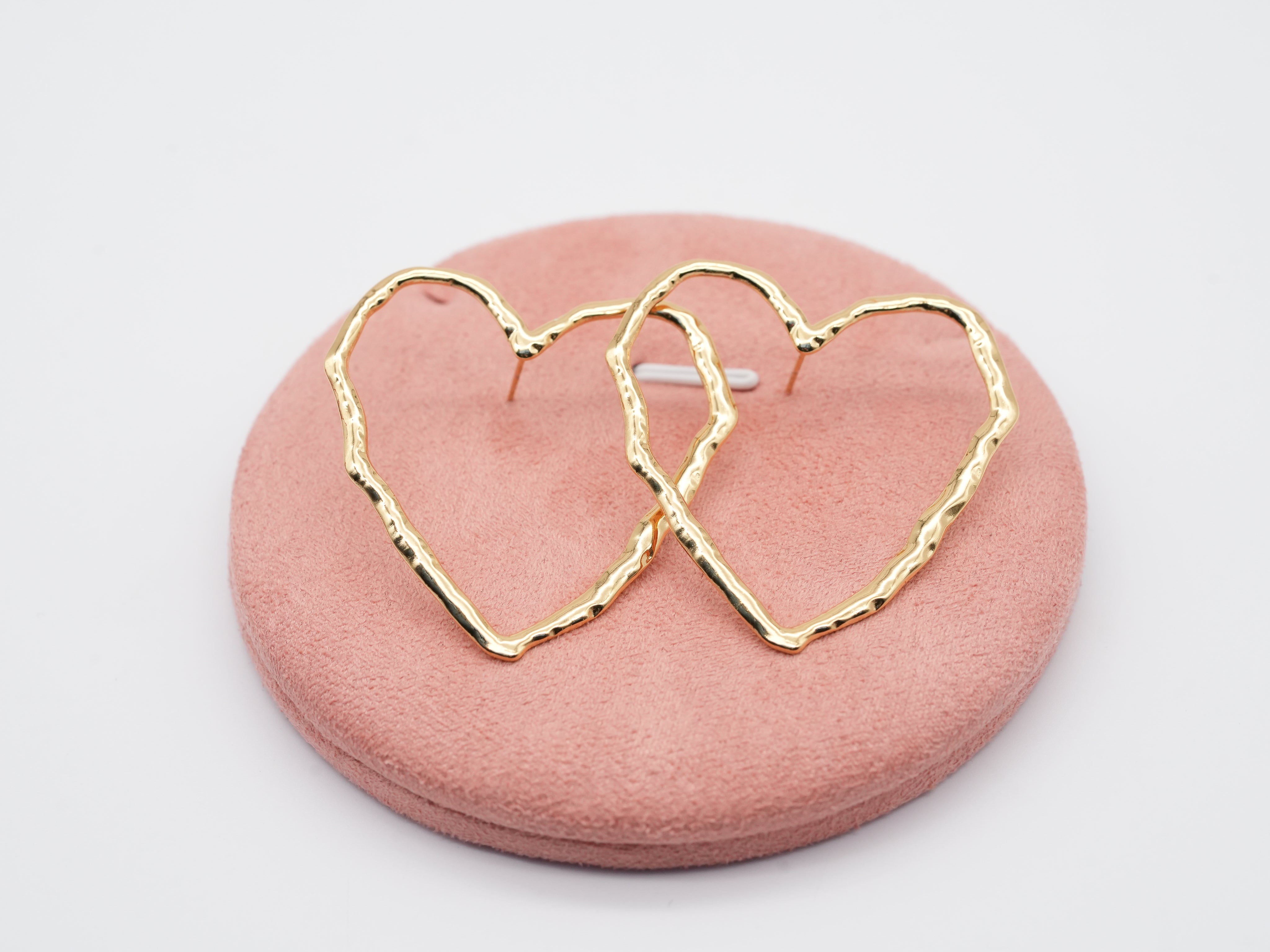 Diese Ohrringe machen ein schönes Statement ❤️ Luftige Herzen mit leicht angerauter Oberfläche wirken modern, verspielt und elegant. Der warme Goldton sorgt für einen edlen Touch und die unregelmäßige Form für den Trendhandmade-Look. Die Ohrringe aus Edelstahl sind langlebig, hautfreundlich und leicht. Sie passen hervorragend zu schlichten Alltagsoutfits, setzen aber auch zu besonderen Anlässen einen liebevollen Akzent. Ein wunderschönes Schmuckstück für alle, die Herz zeigen wollen – modern, feminin und zeitlos.