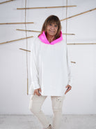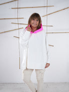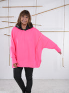 Marion ist 172cm groß und trägt Größe 40/42. Sie ist auf allen Produktbildern zu sehen und präsentiert die wunderschönen onesize Outfits.
