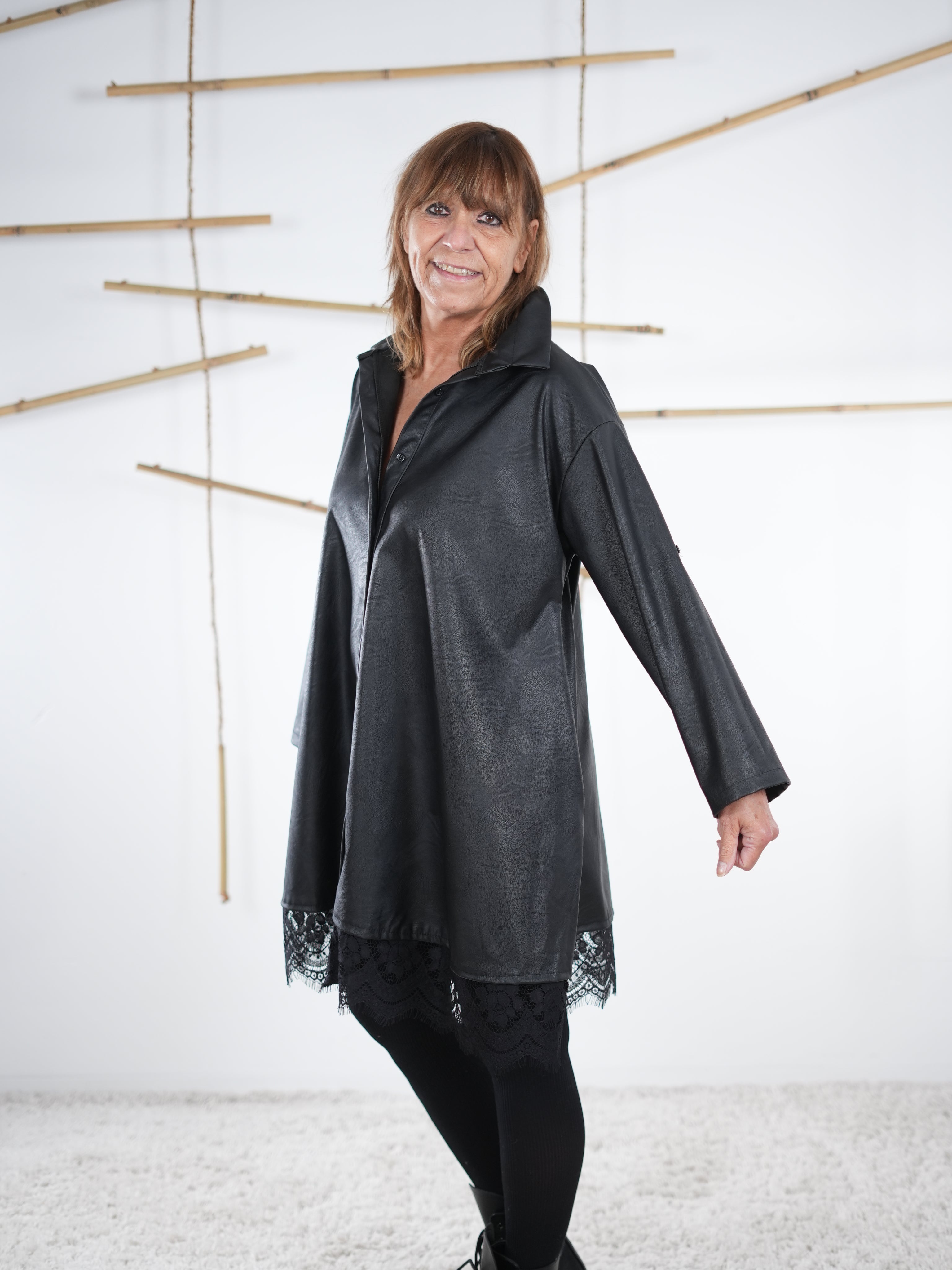 Marion ist 172cm groß und trägt Größe 40/42. Sie ist auf allen Produktbildern zu sehen und präsentiert die wunderschönen onesize Outfits.