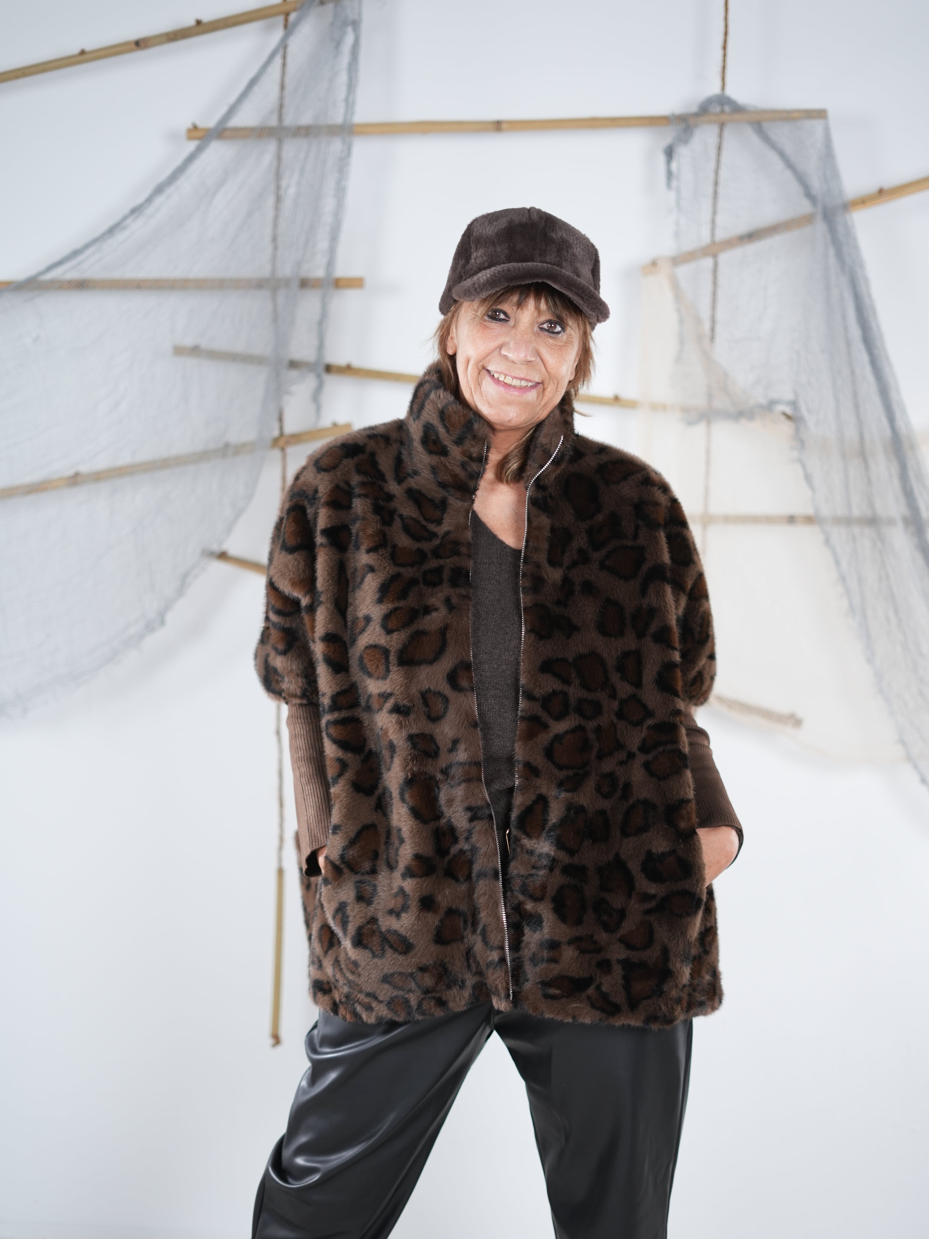 Marion ist 172cm groß und trägt Größe 40/42. Sie ist auf allen Produktbildern zu sehen und präsentiert die wunderschönen onesize Outfits.