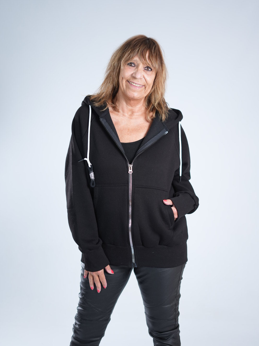 Marion ist 172cm groß und hat Konfektionsgröße 40/42.